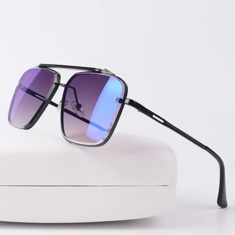 Sunglasses For Men Vintage Rimless Alloy Aviation Pilot Brand Gradient Sun Glasses Female Metal Oval Shades Black Brown