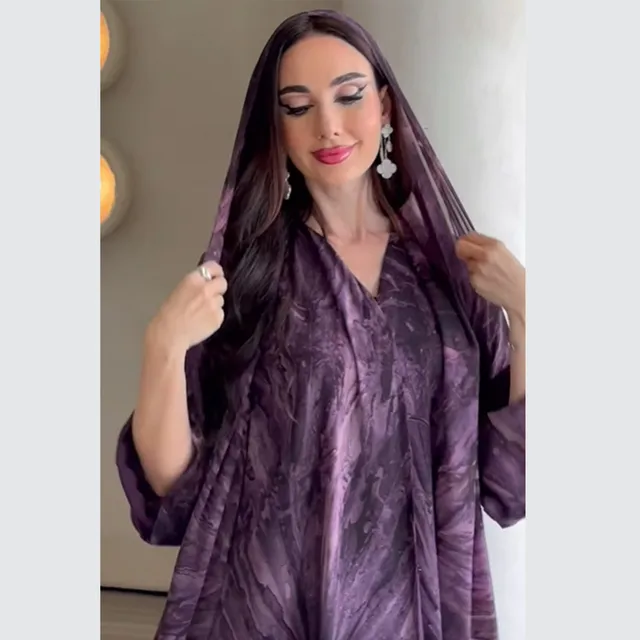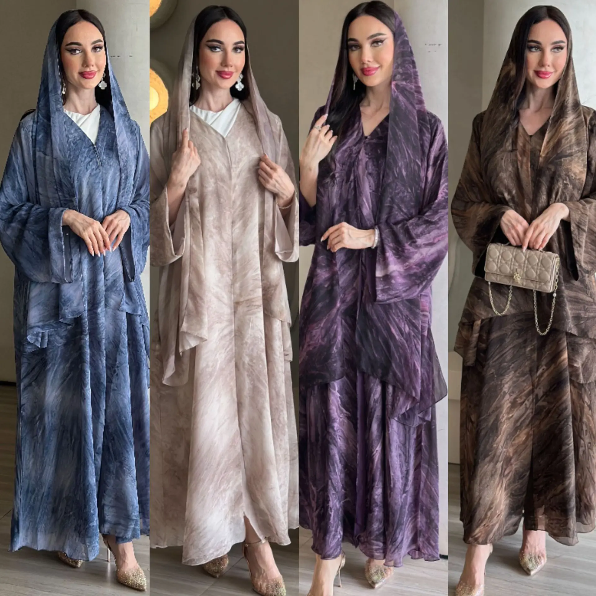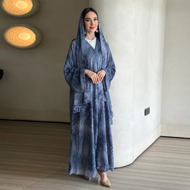 A two-piece set of Dubai Middle East Turkish fashion printed cardigan and headscarf