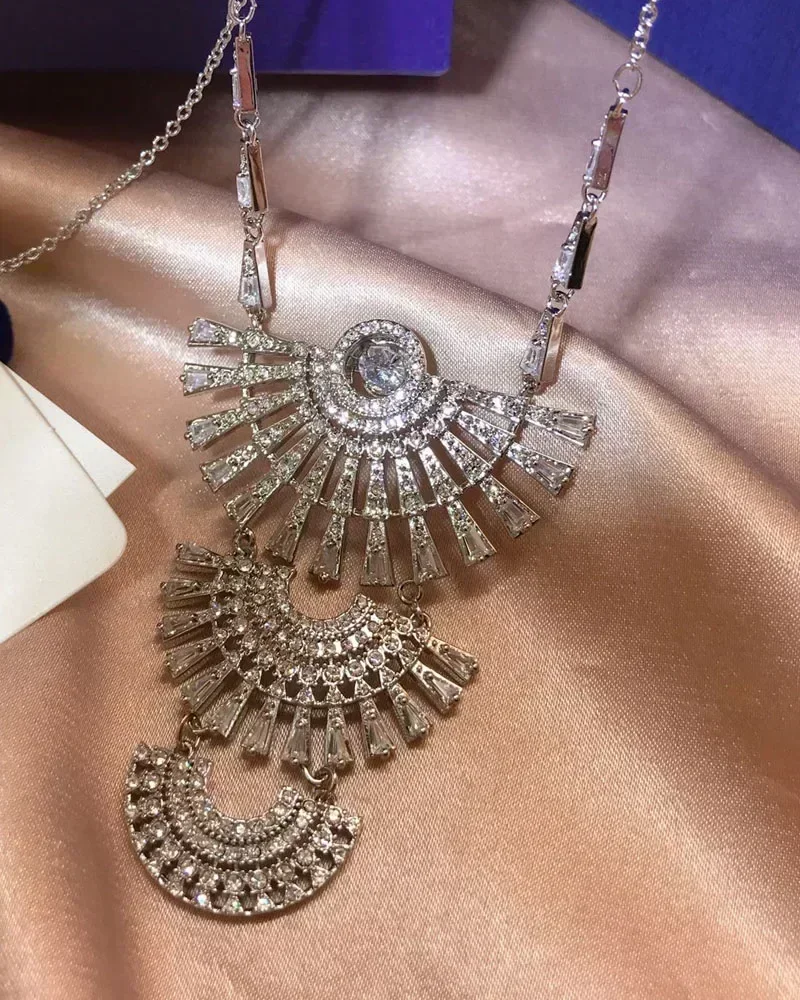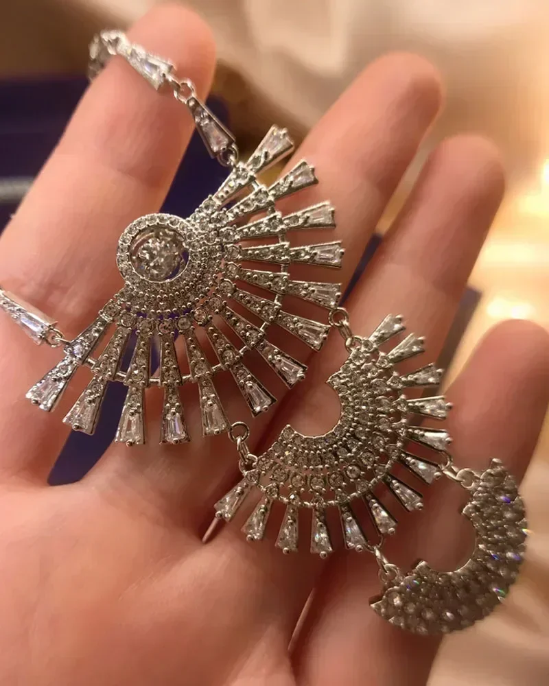 2025 New Fashion Shining Jumping Crystal Women’s Fine Jewelry Set Luxury Brand Necklace Earrings