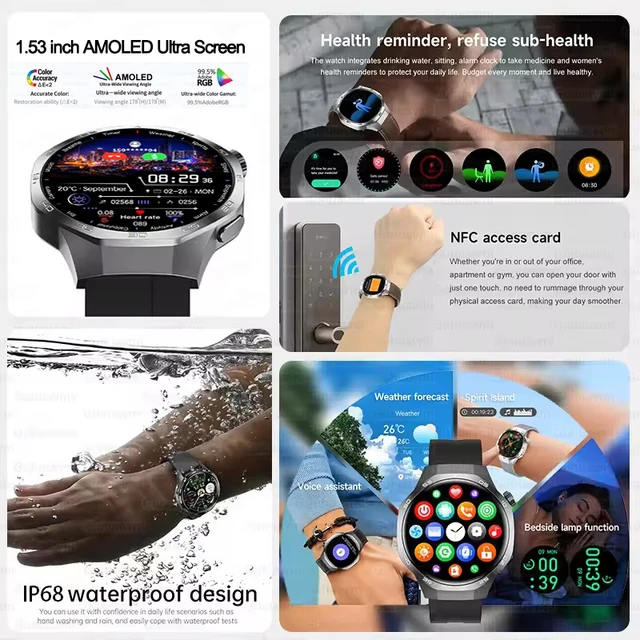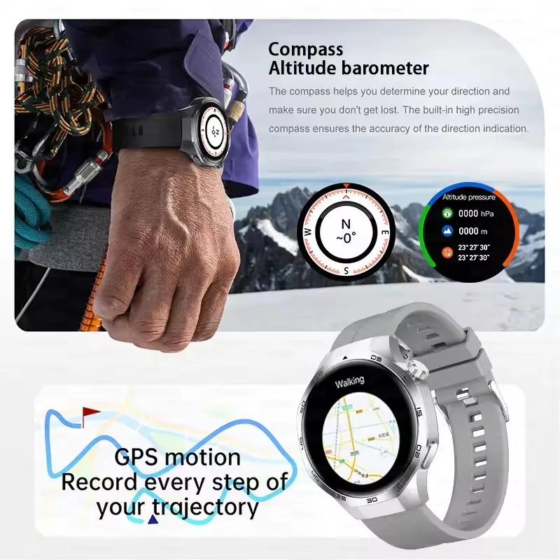 2025 New Fashion Watch GT5 Pro GPS NFC Smart Watches Men 1.53″AMOLED Compass Altimeter Waterproof
