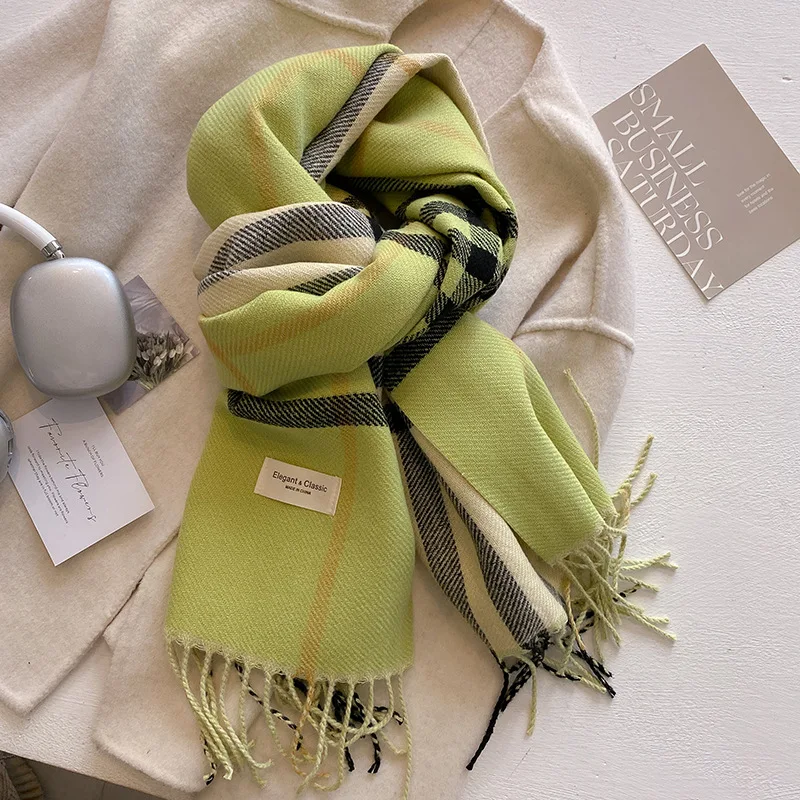 2025 New Girl Student Grid Autumn/Winter Double Sided Cashmere Imitation Scarf for Student Couples, Winter Luxury Warm Shawl