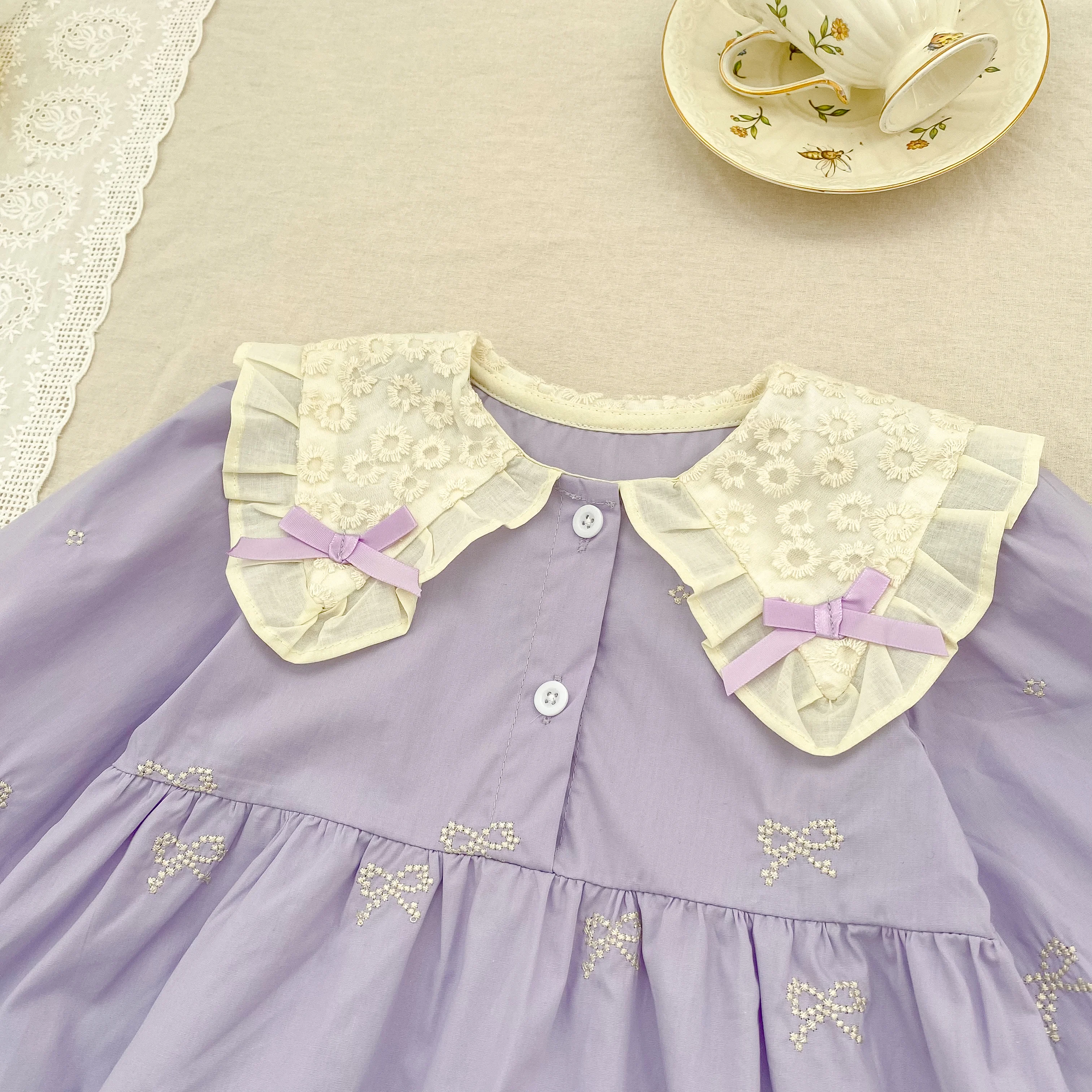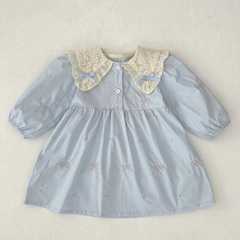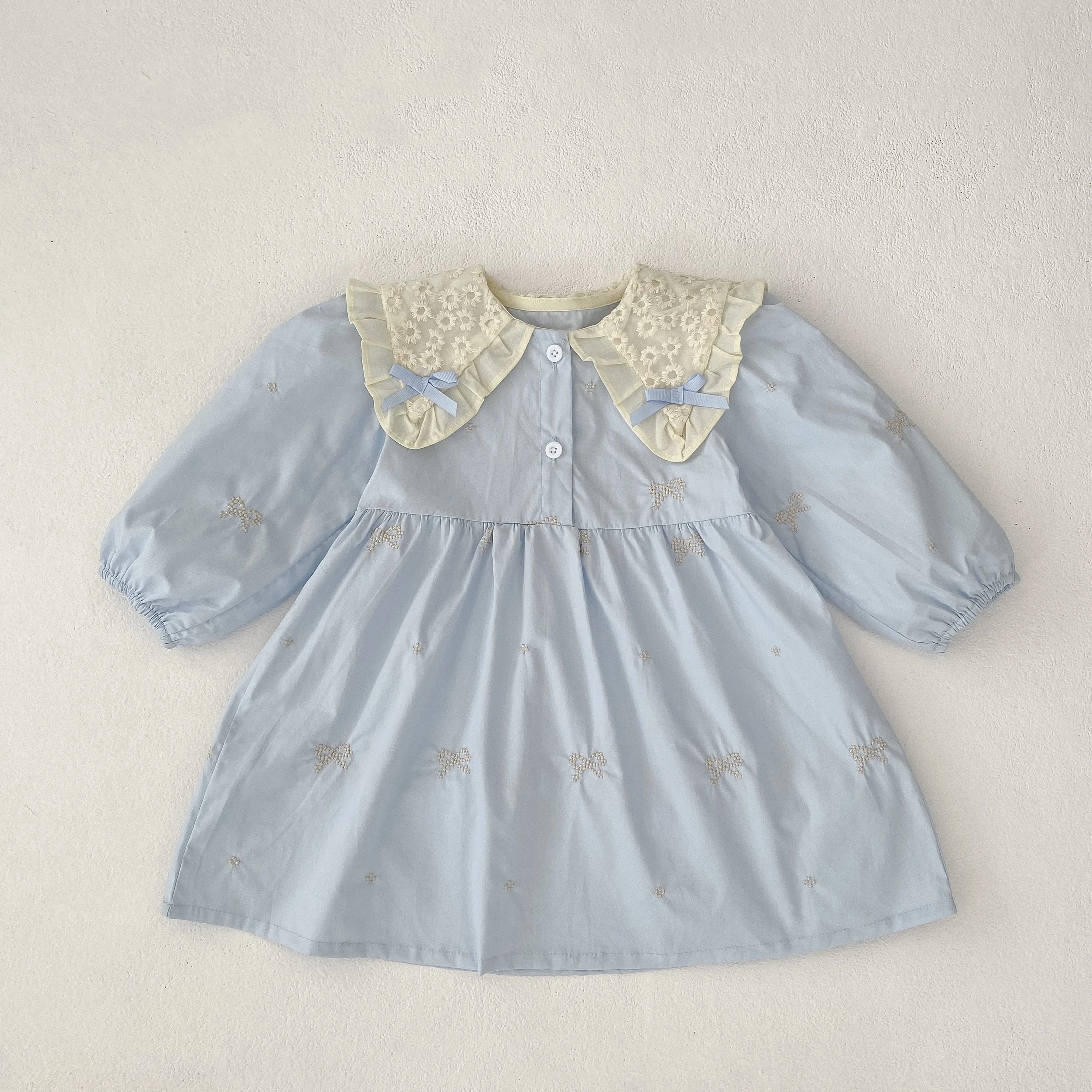 2025 New Girls Dress Baby Lace Bow Dress Princess Stylish Children’s
