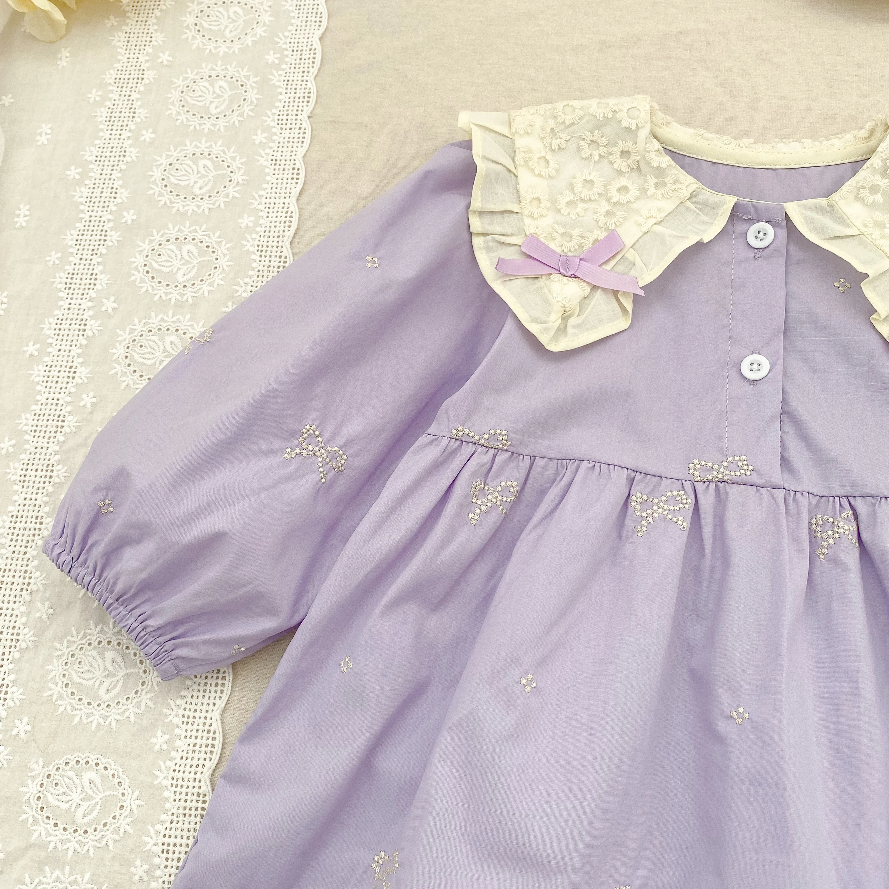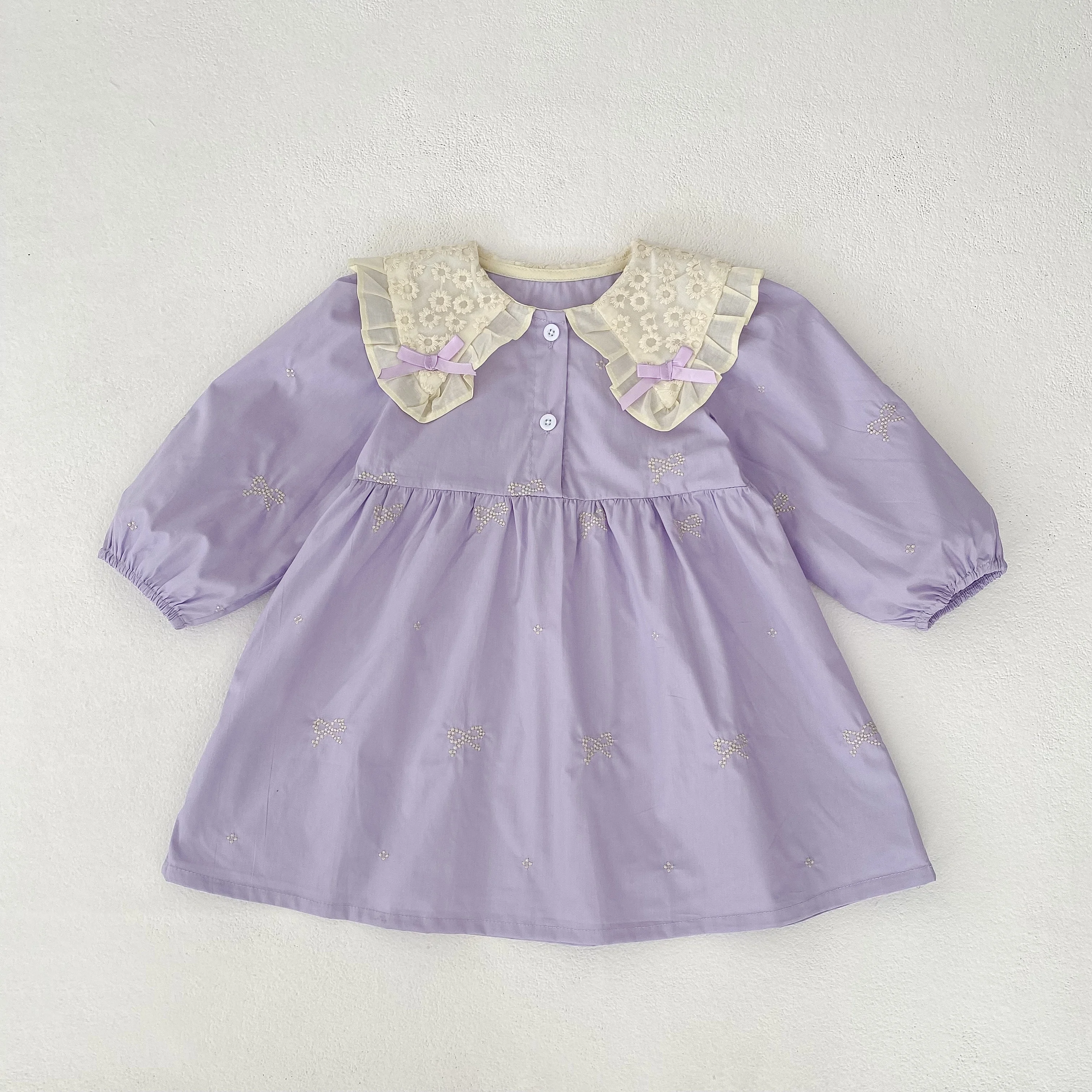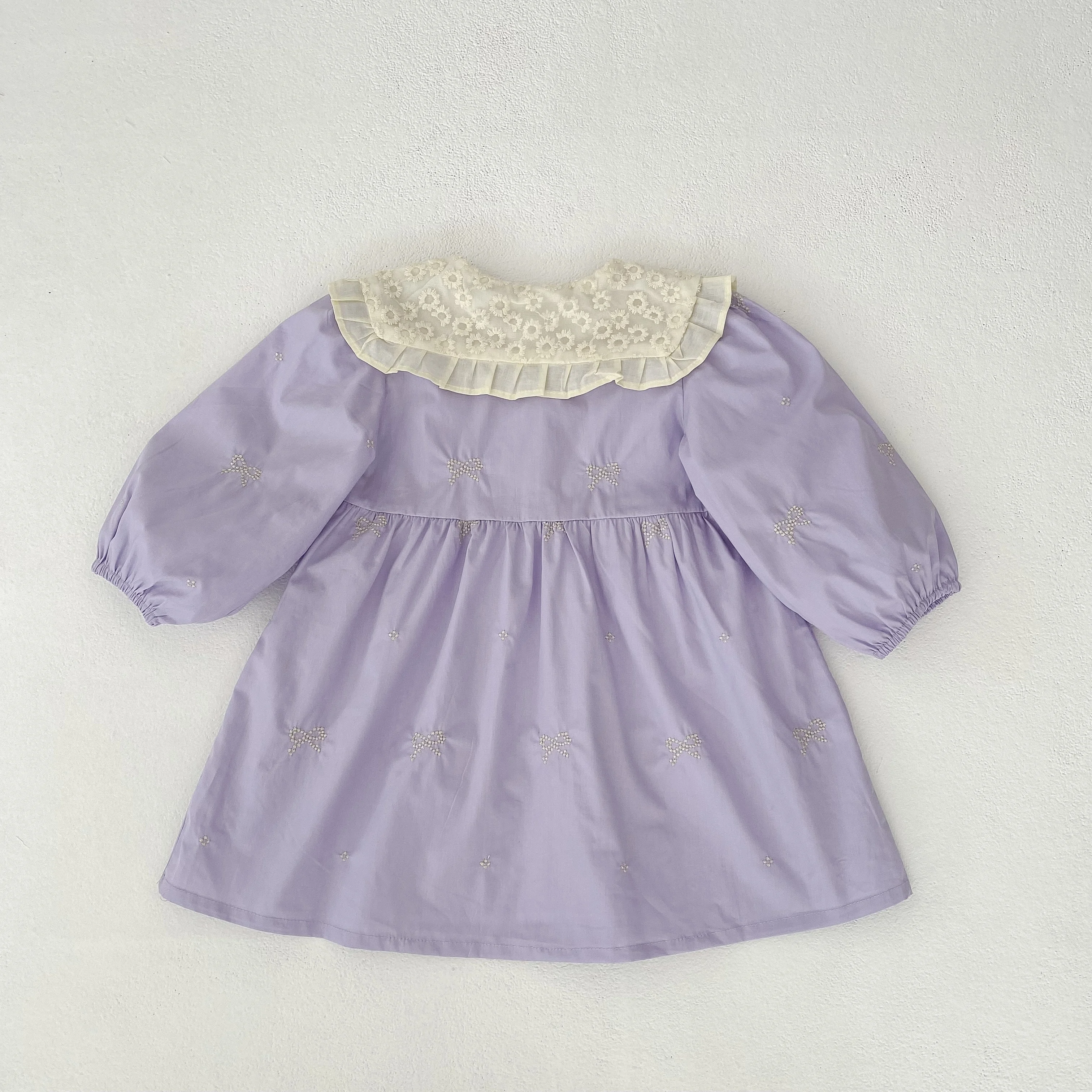 2025 New Girls Dress Baby Lace Bow Dress Princess Stylish Children’s