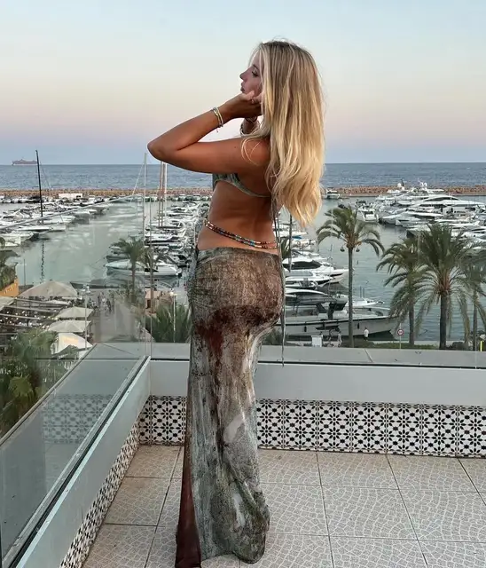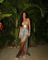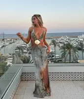 2025 New Hollow Out Beach Dresses For Women 2 Piece Swimwear Retro Print Mesh Swimming Elegant Cover-Up