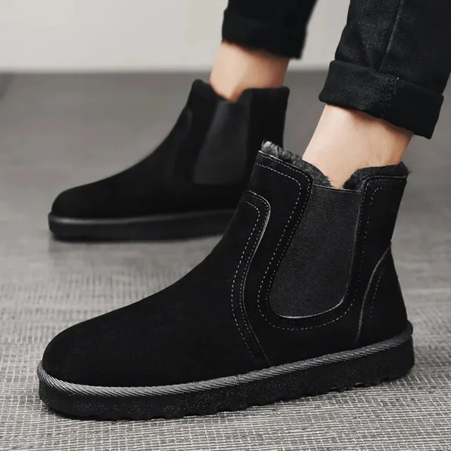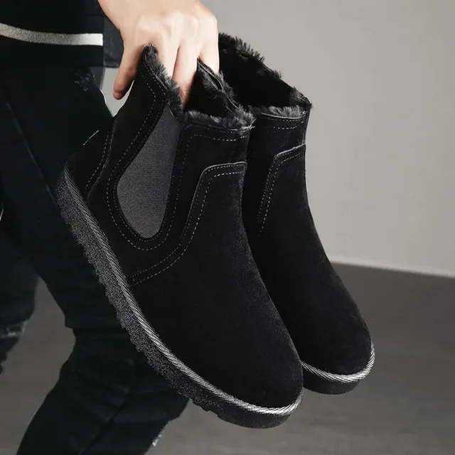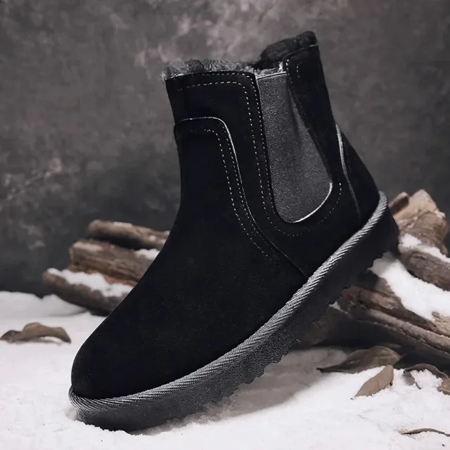 New Winter Men Snow Boots Fur Plush Warm Men Ankle Boots Plus Size Waterproof Men Boots Outdoor Non-Slip Hiking Boots Work Shoes