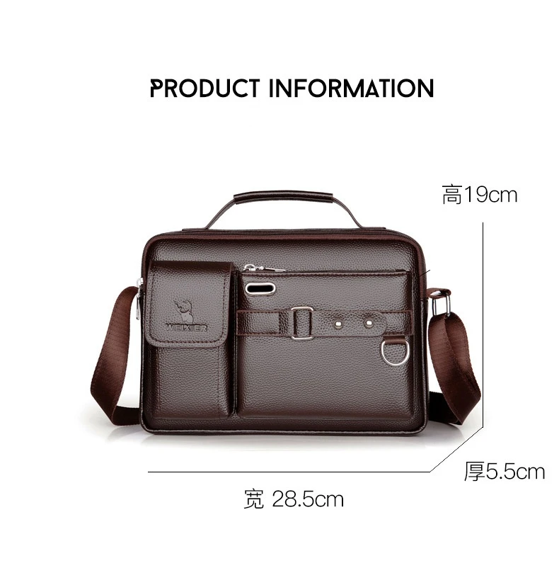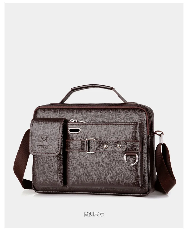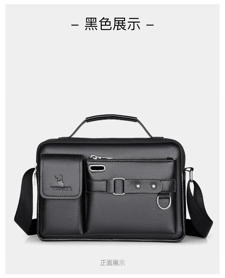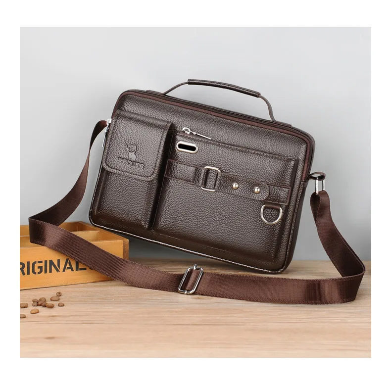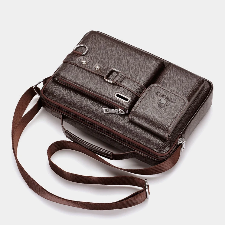 Men Crossbody Shoulder Bags Vintage PU Men Handbag Multi-pocket Men Shoulder Bag Zipper Solid Waterproof For Travel Business