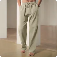 2025 New Men Spring Summer Quality Trousers Mens Cotton Hemp Breathable Comfortable Casual Home Straight