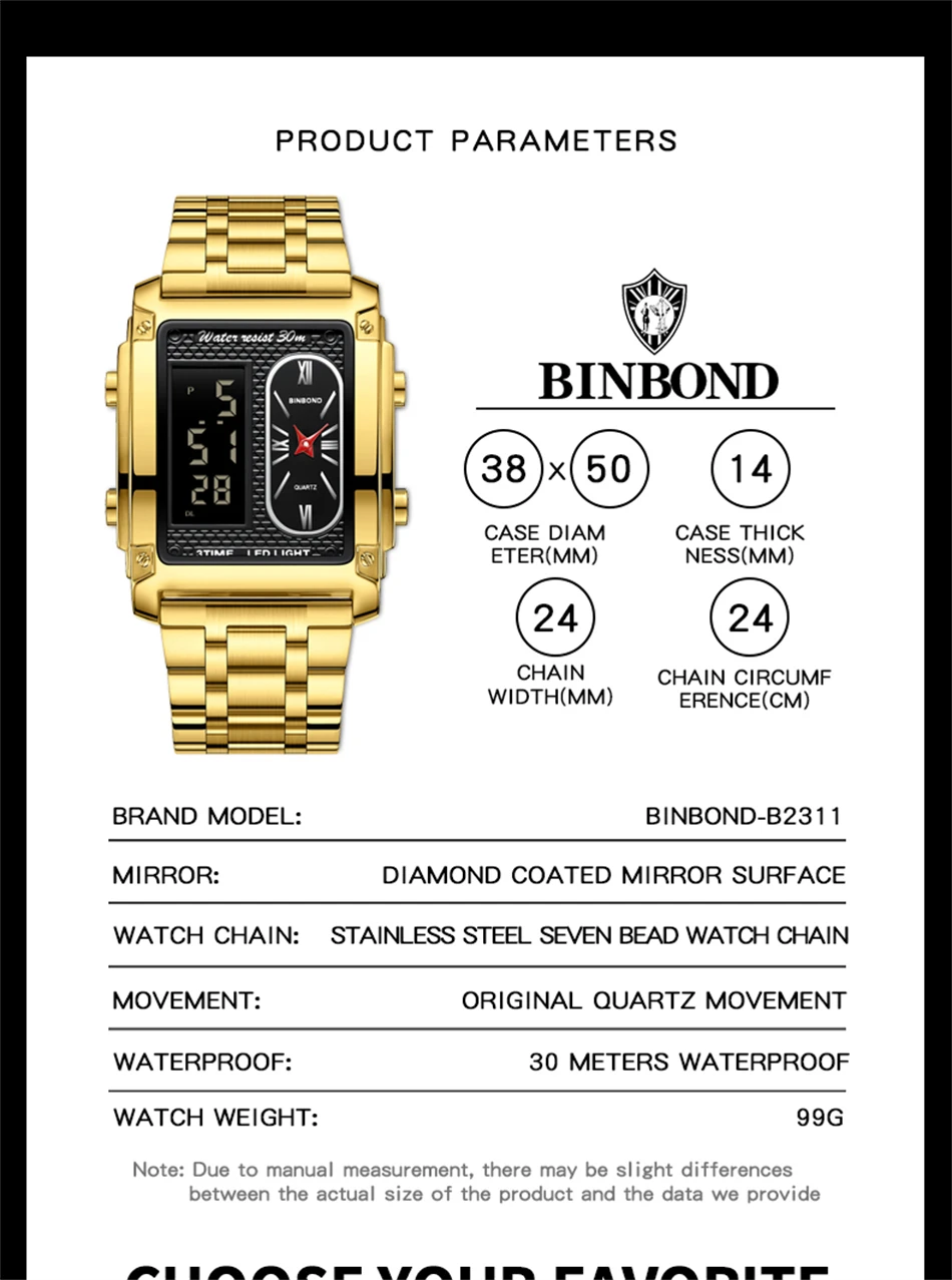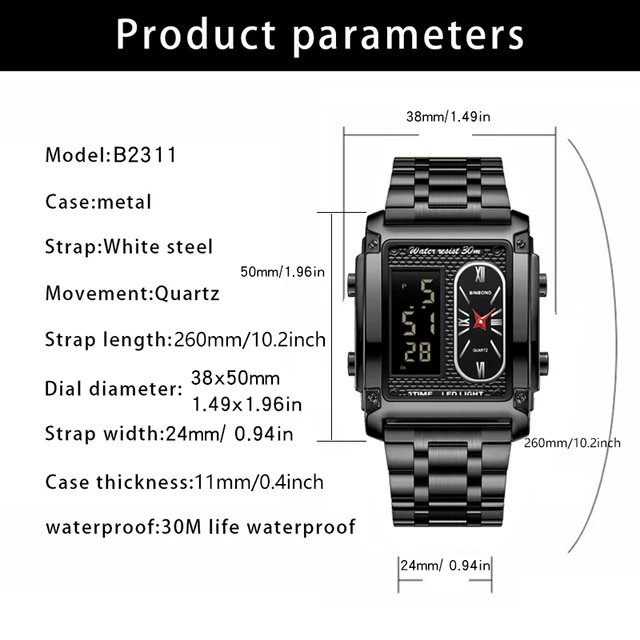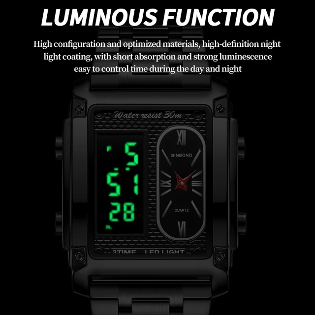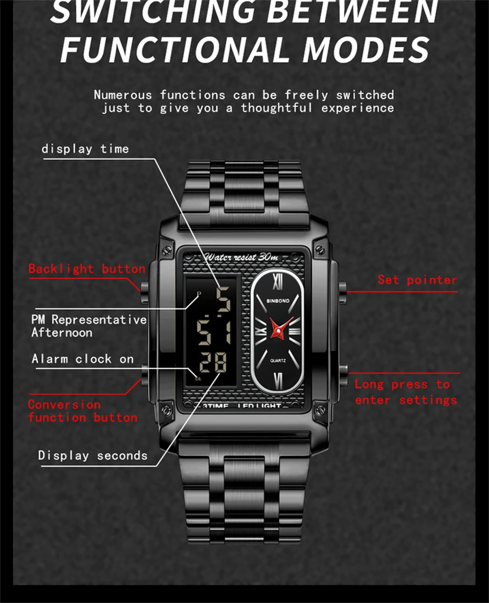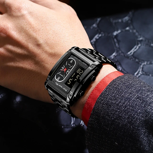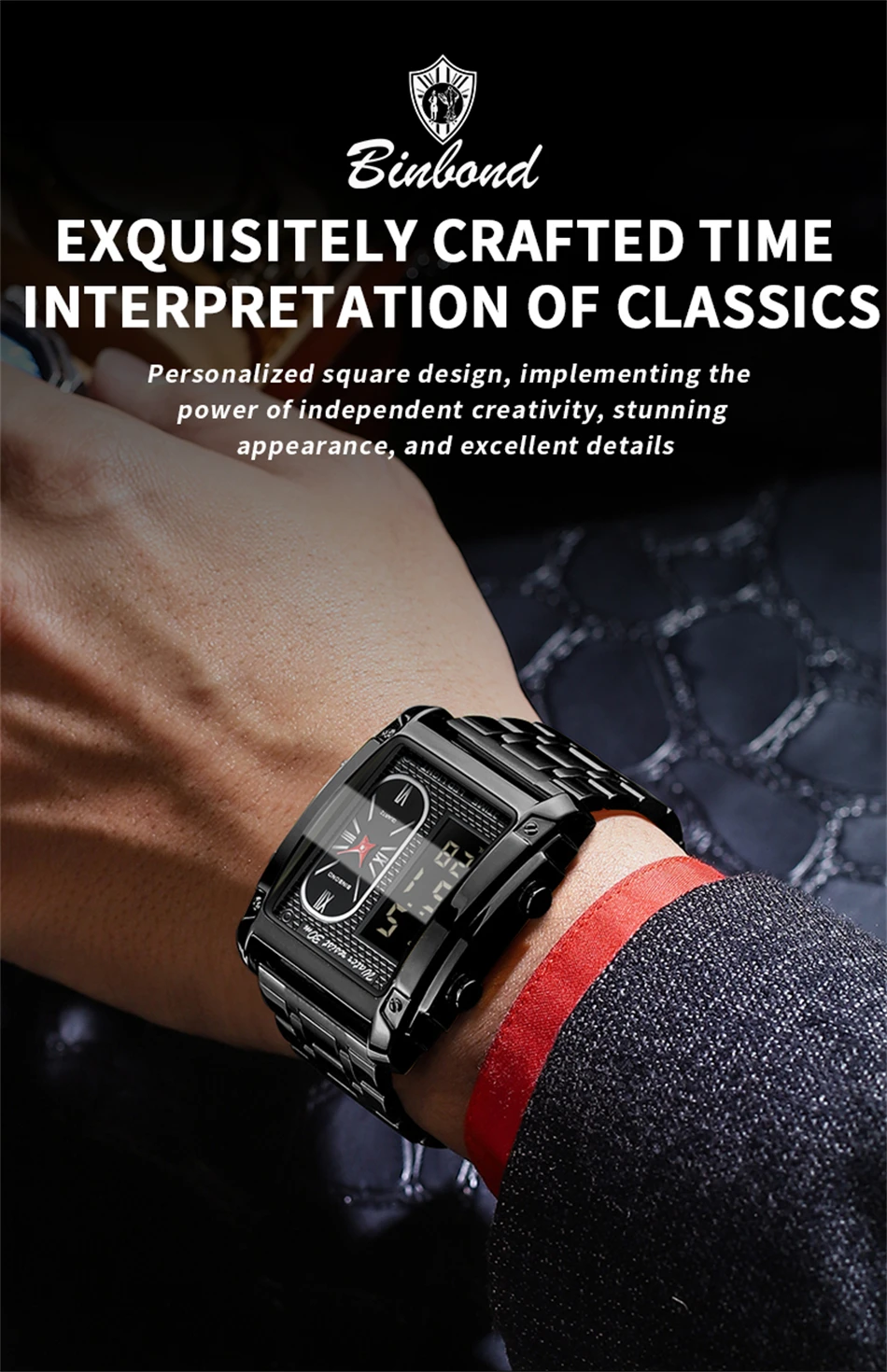 2025 NEW Men Watch Business Brand Square Sports Dual Display Electronic Waterproof Steel Belt Male Fashion