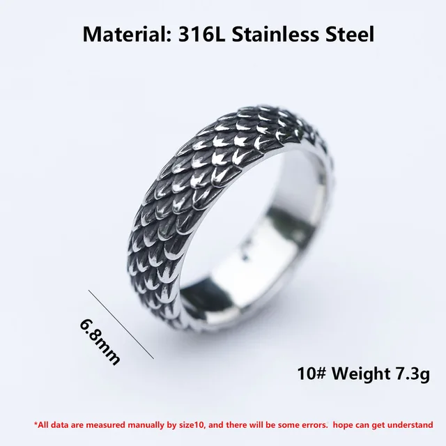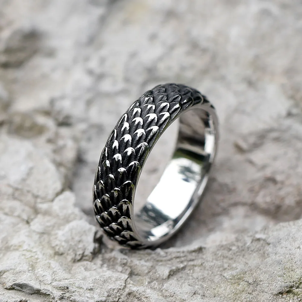 Punk Vintage Stainless Steel Dragon Scale Ring For Men Women Biker Hip Hop Animal Amulet Rings Fashion Jewelry Gifts Wholesale