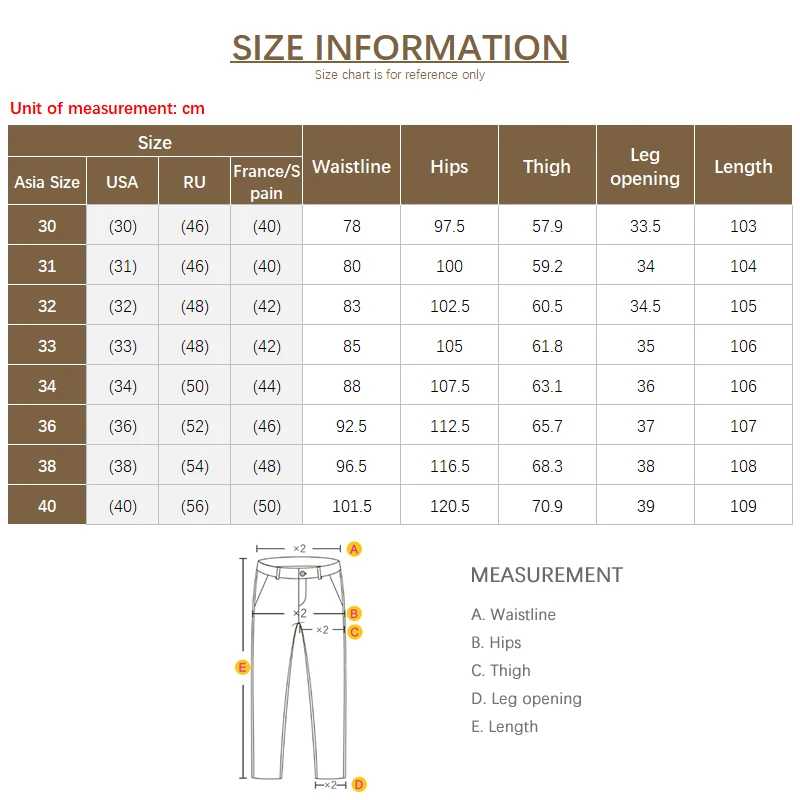 1. The size is Chinese size, pants size 32 = 32 inches waist = 81.5cm waist.