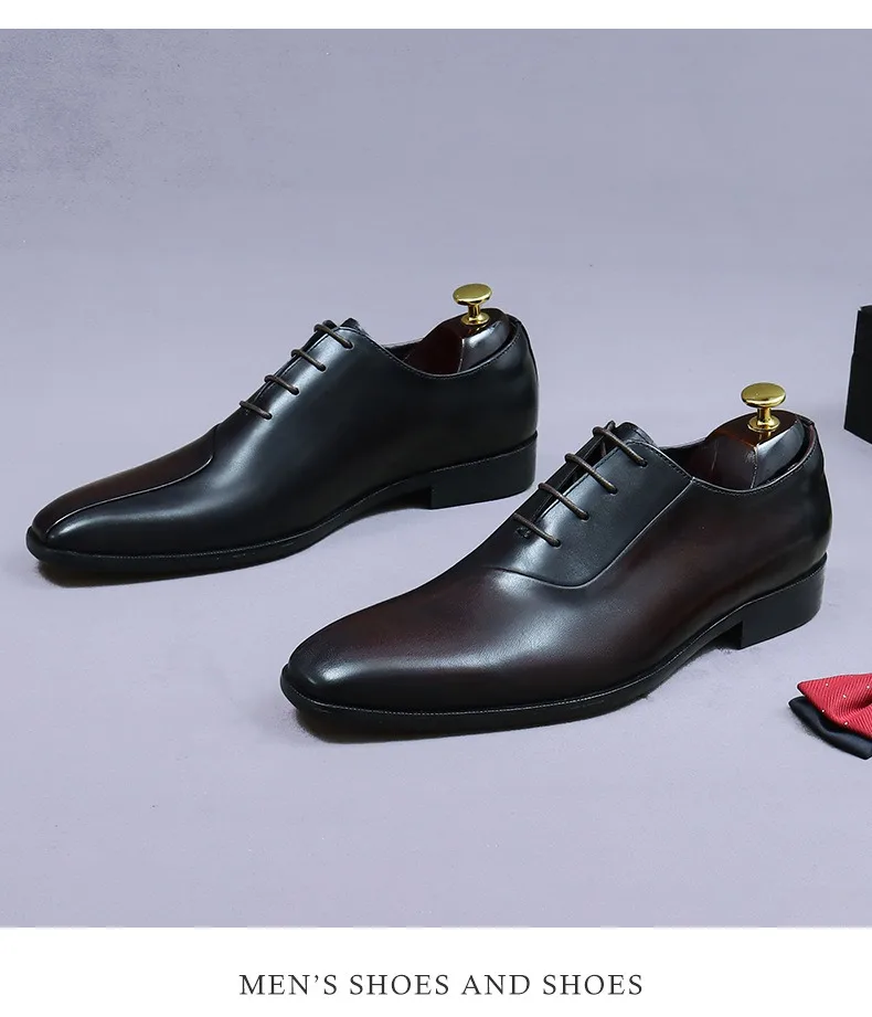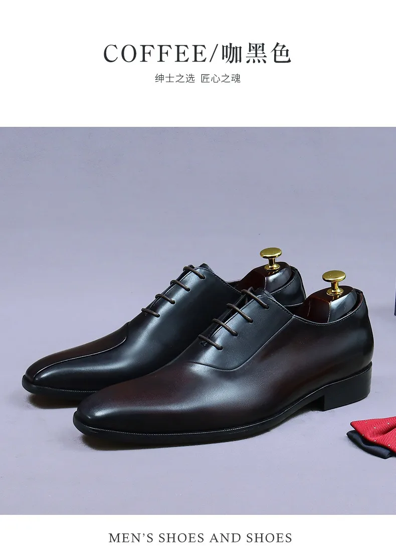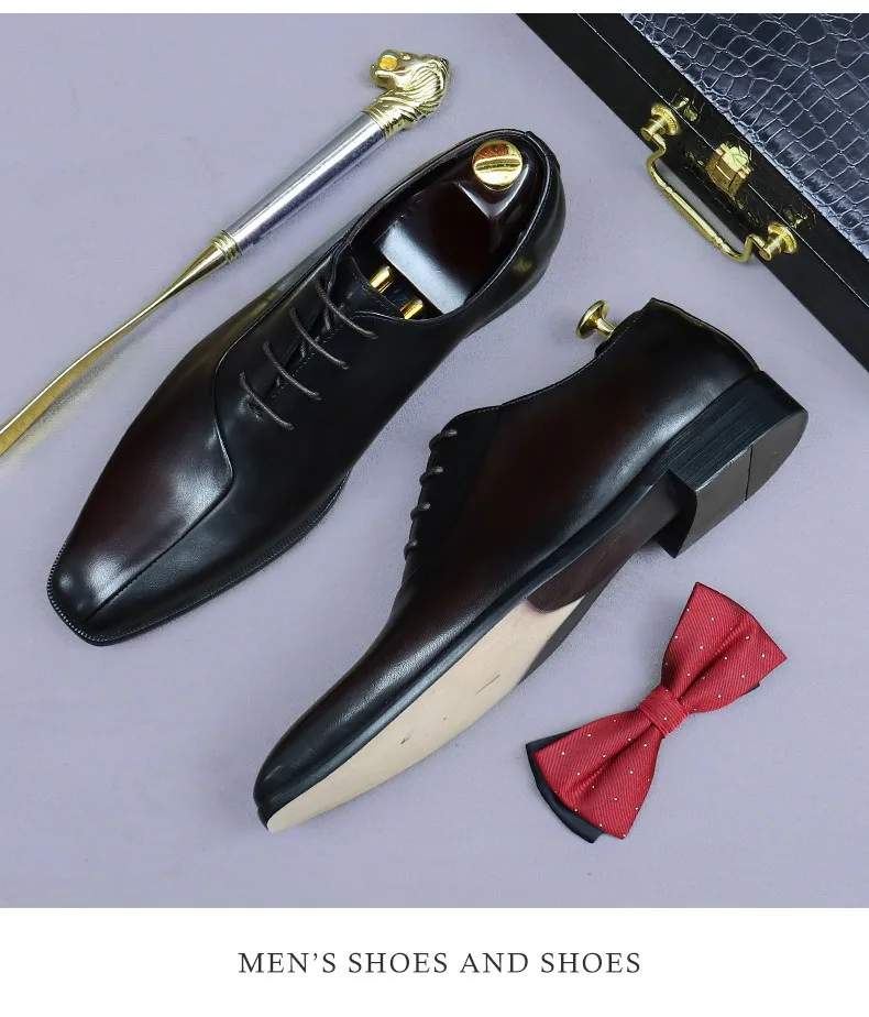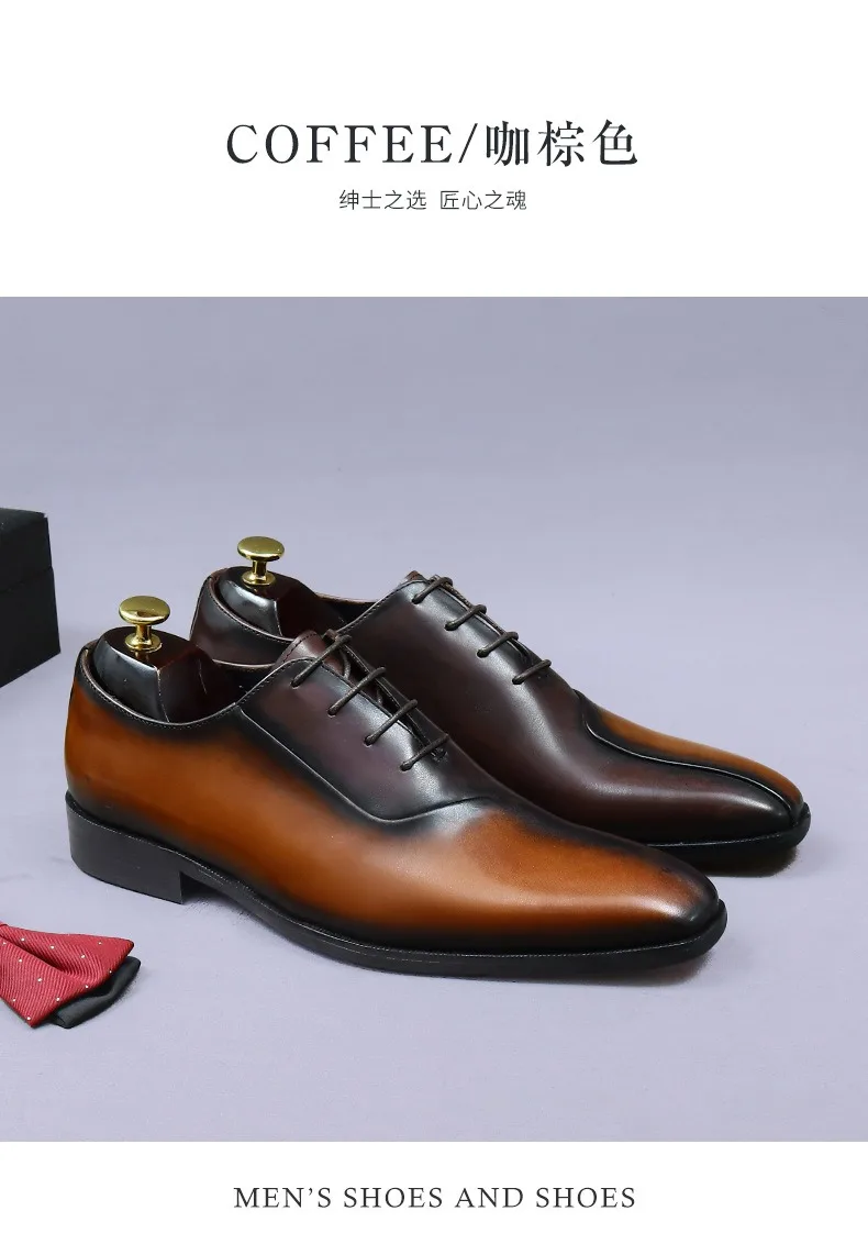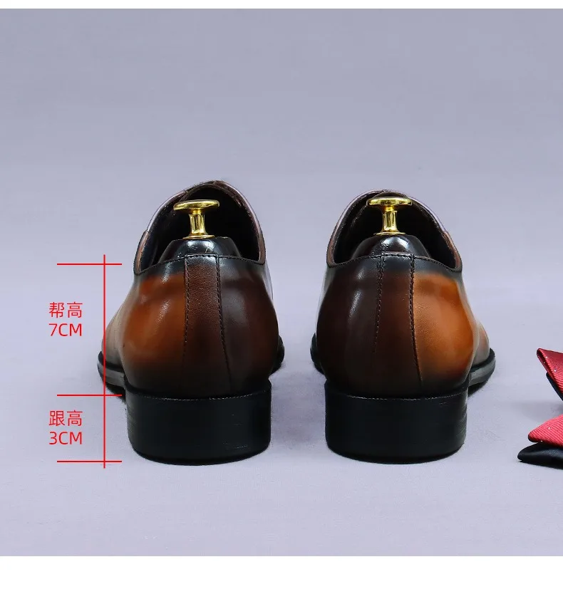 2025 New Men’s High-End Handmade Cowhide Business Dress Leather Shoes Block Oxford Wedding Shoes