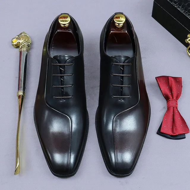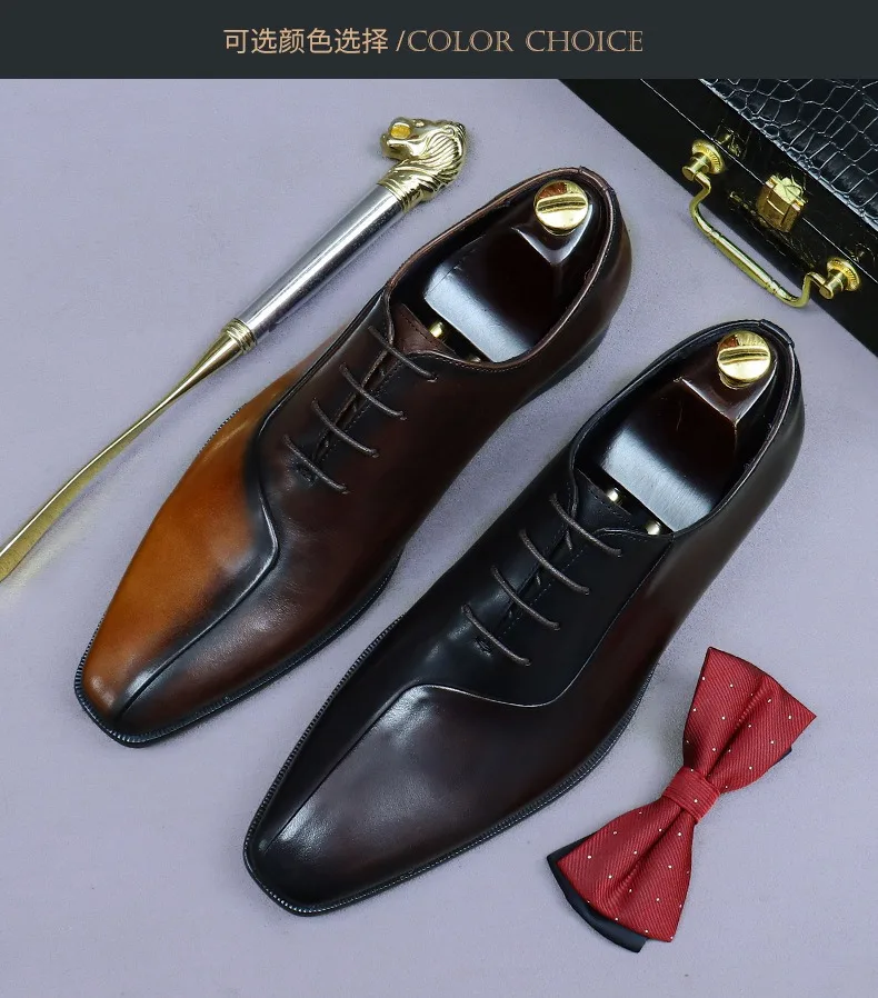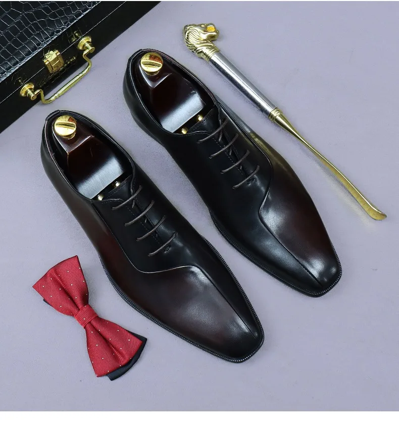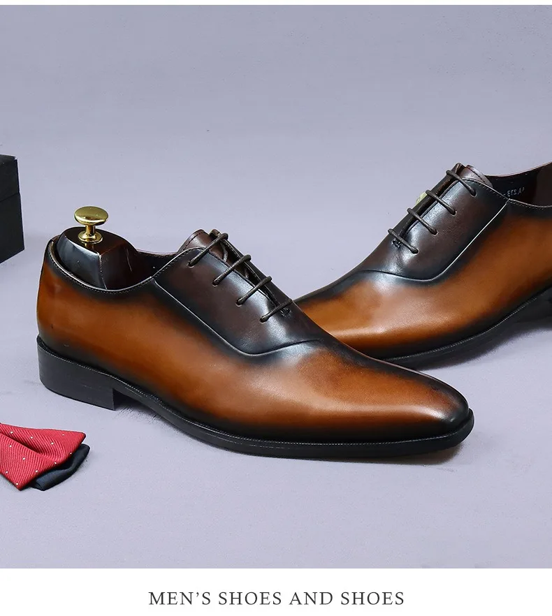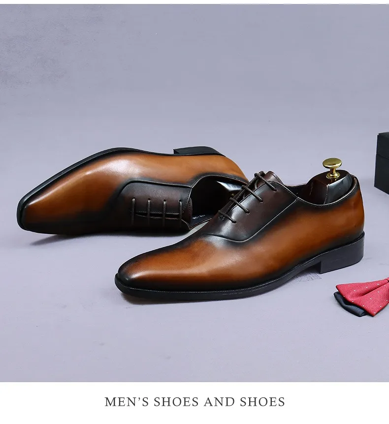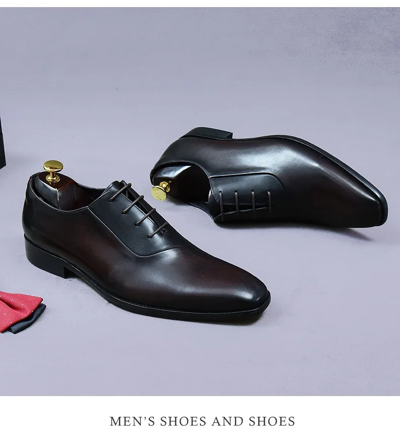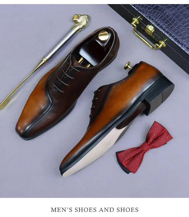 2025 New Men’s High-End Handmade Cowhide Business Dress Leather Shoes Block Oxford Wedding Shoes