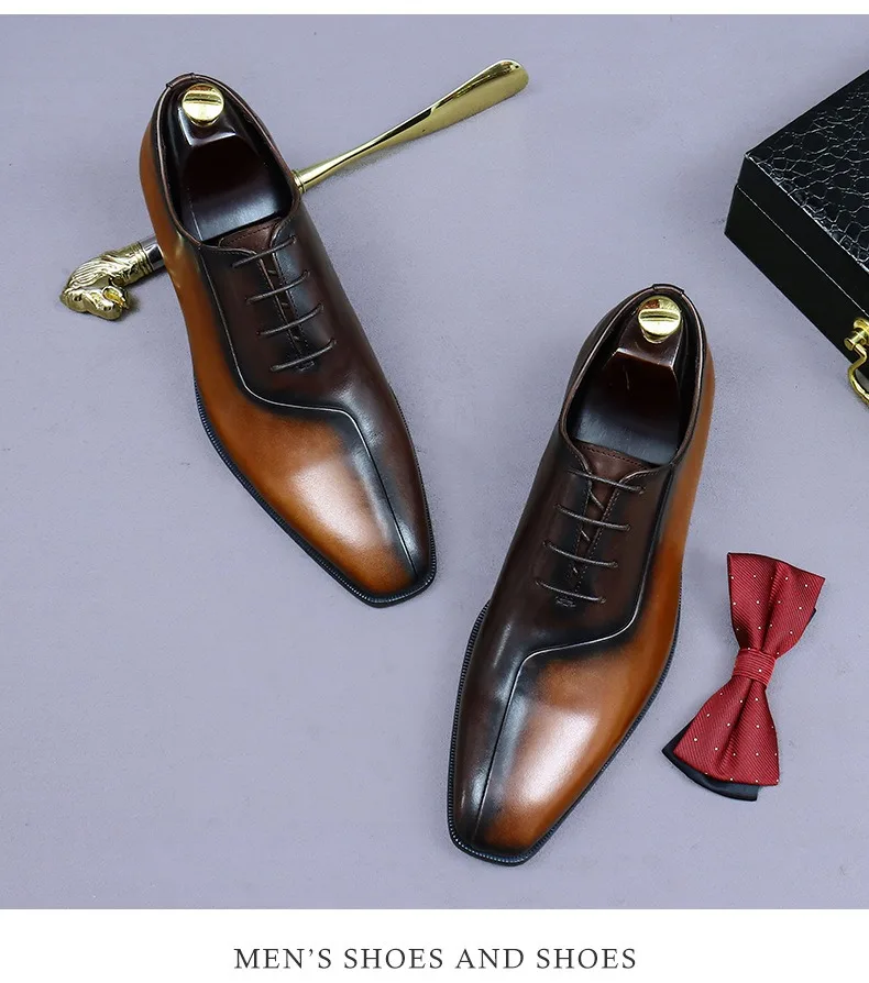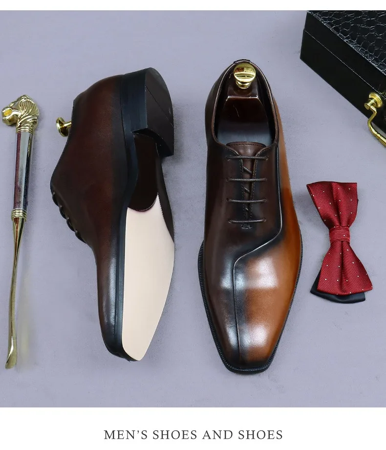 2025 New Men's High-End Handmade Cowhide Business Dress Leather Shoes Block Oxford Wedding Shoes