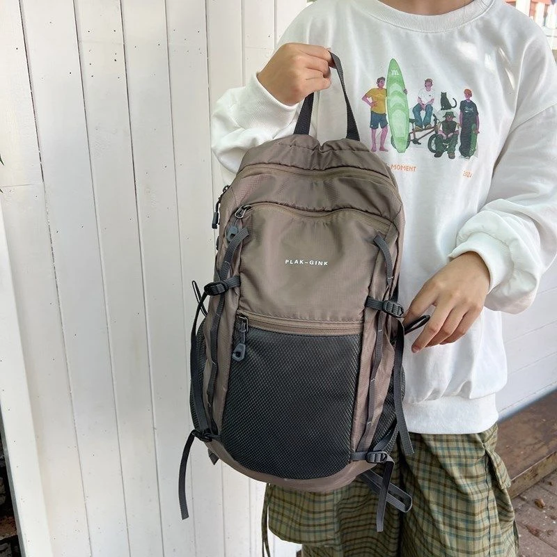 Equipped with arc-shaped shoulder straps, this backpack provides comfortable support for long hikes and travels.