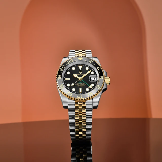 The GMT Dual Time’s second time zone hand is designed as a green triangular arrow hand to indicate the second time zone. The date window at 3 o’clock is a classic magnifying glass. The date is easy to read.