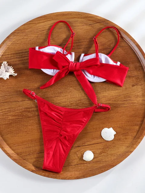 Be the first to review “2025 New Push Up Bikinis Sexy String Swimsuit Red Swimwear Women Bathing Suit Summer Beachwear Bandage”