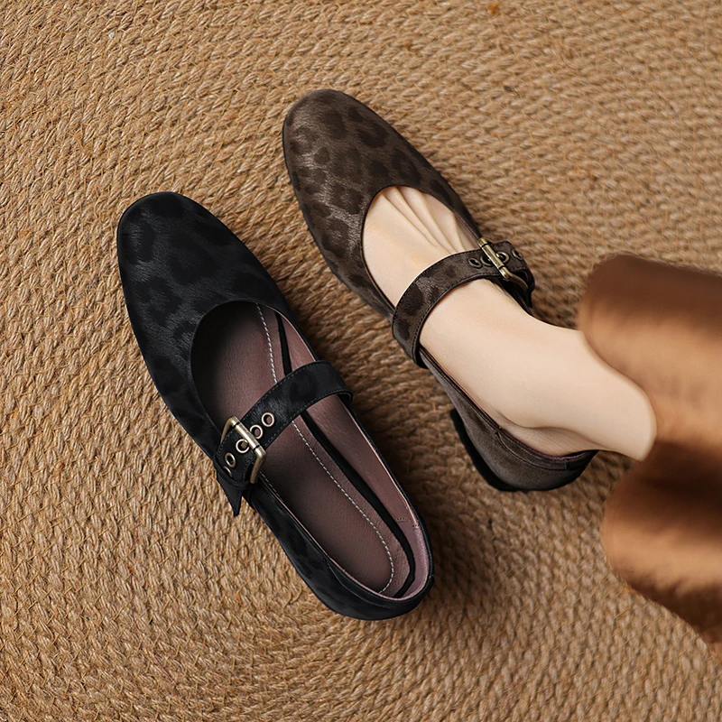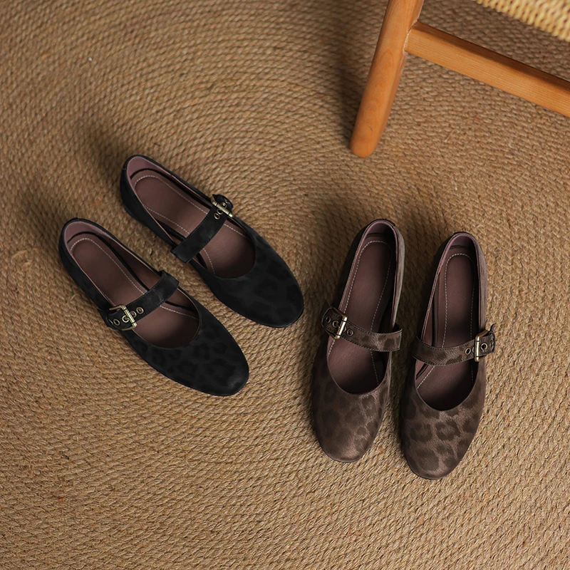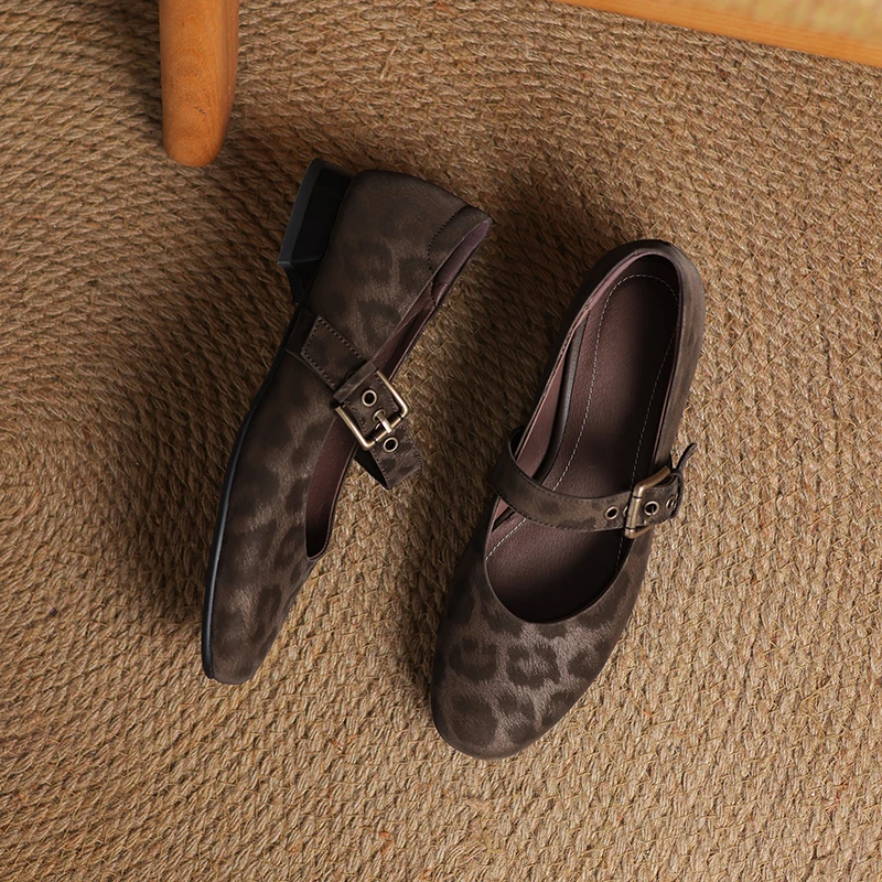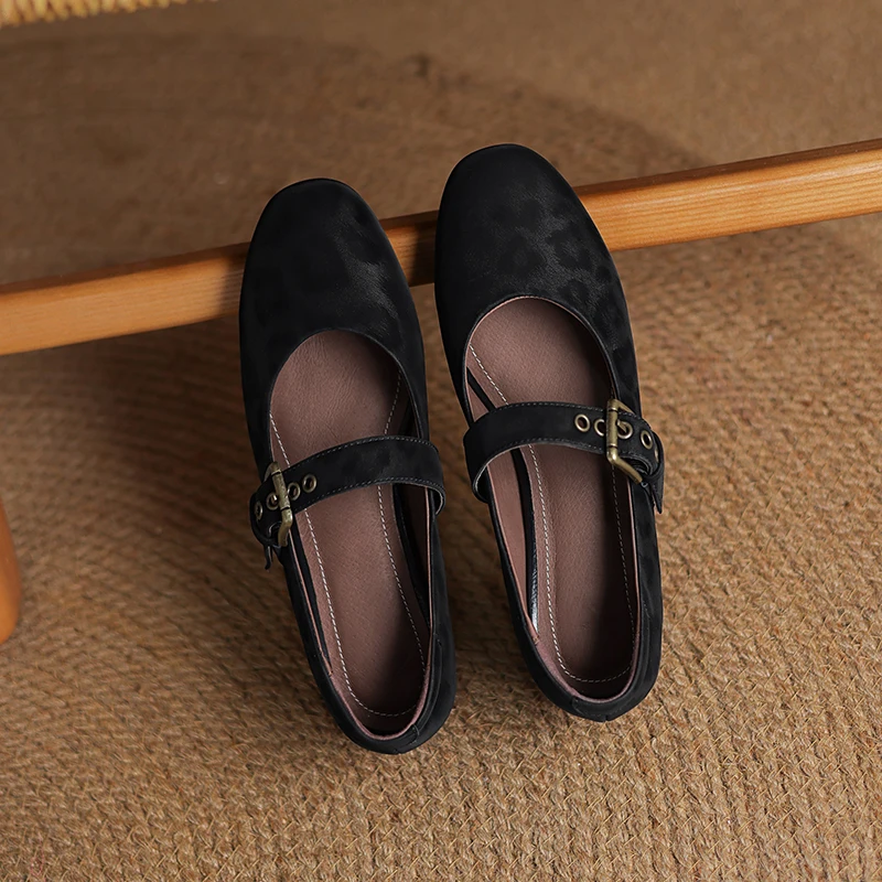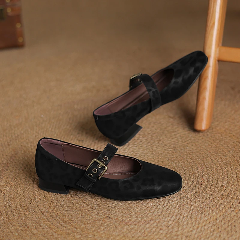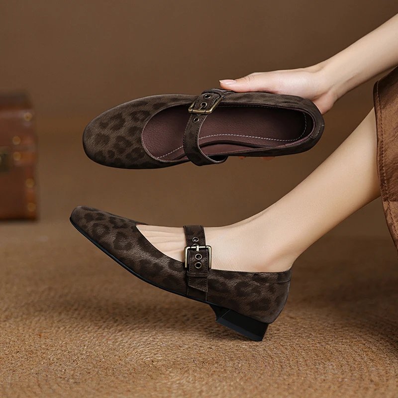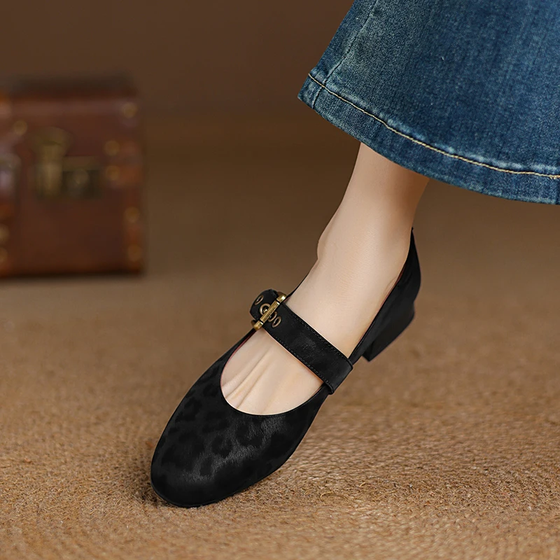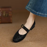 2025 New Spring Women Pumps Round Toe Low Heel Shoes Genuine Leather Women Shoes Concise Ladies Mary