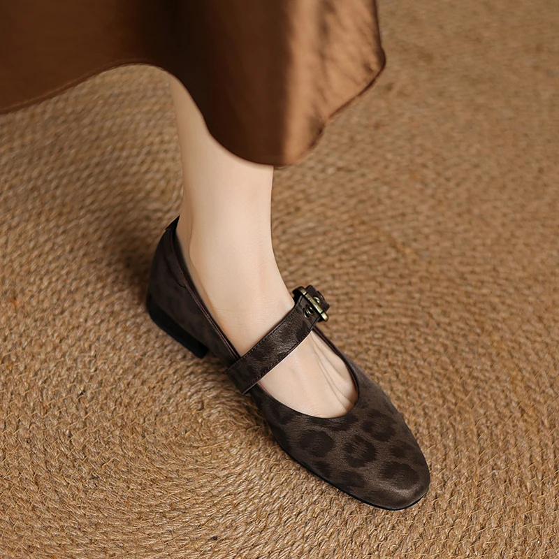2025 New Spring Women Pumps Round Toe Low Heel Shoes Genuine Leather Women Shoes Concise Ladies Mary Janes  Shoes Brown Big Size