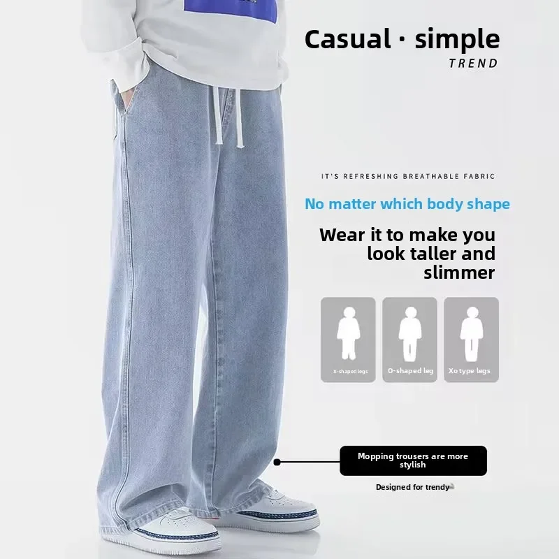 IEFB Summer Men's Denim Pants Old Blue Washed Male Jeans Straight Casual Menwear Loose Wide Leg Trousers New Fashion 9C354
