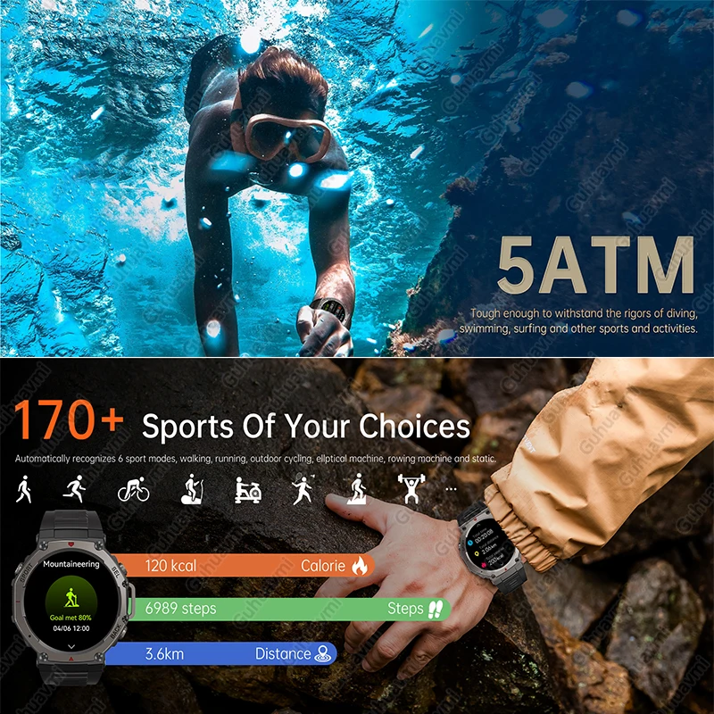 T-Rex 3 GPS Smart Watch 5 ATM Waterproof Built-in Dual-band GNSS Compass Military Sport Smartwatch Men 2025 New for Xiaomi
