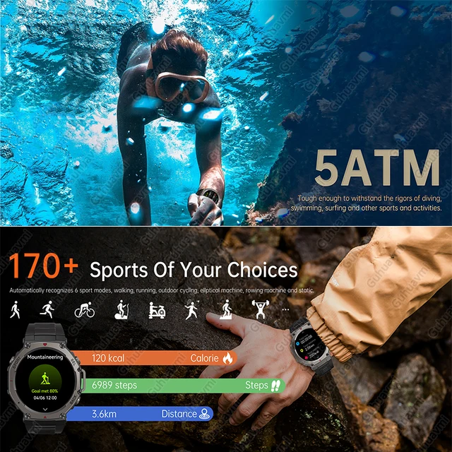 New Smart Watch 466*466 1.43 AMOLED Full Touch Screen 5ATM waterproof GPS 500mAh High Battery Compass 170+ Sports Modes For Men