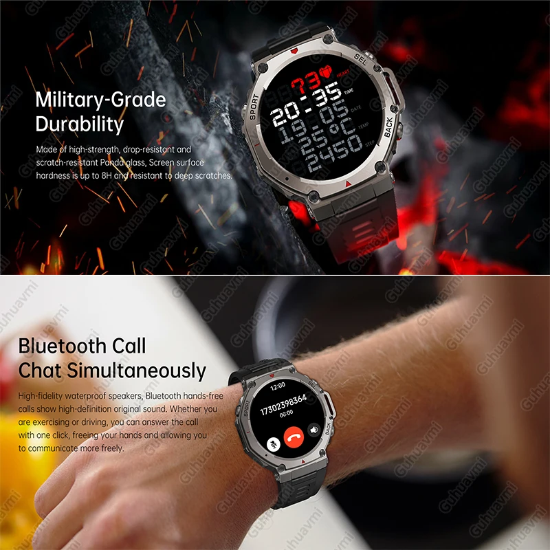 GUHUAVMI Tank GPS Smart Watch Built-in Compass Barometric Altimeter Dual-band GNSS Voice Calling Smartwatch 10 ATM