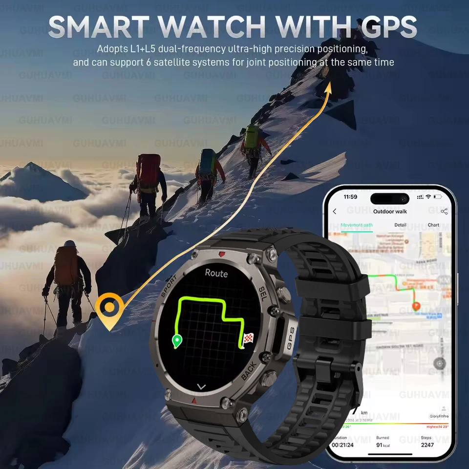 2025 Outdoor Military GPS SmartWatch Aurafit G6 / Trek 1 Compass Altimeter Chat GPT 5ATM Waterproof Sports Smart watch Men