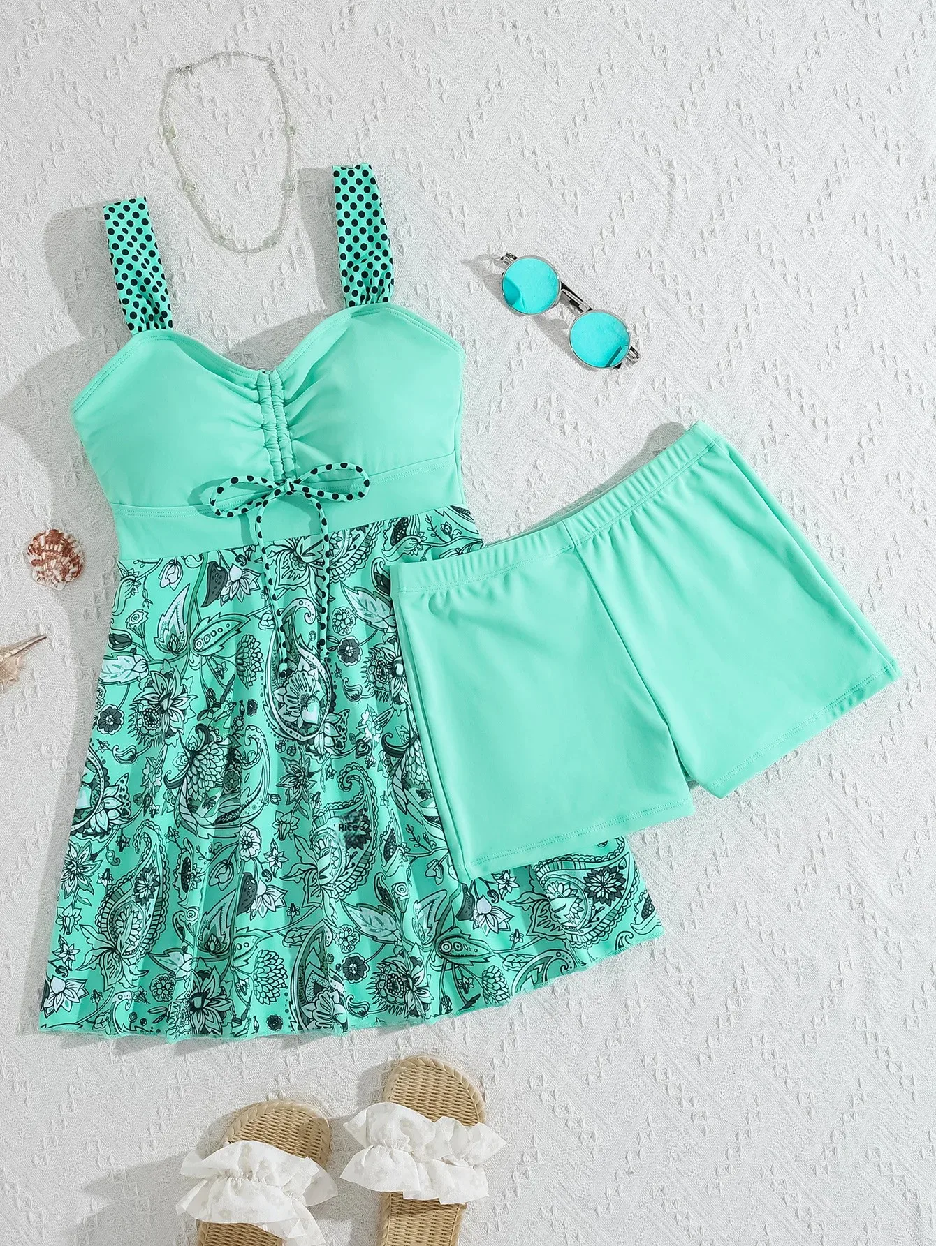 • Drawstring Shorts Suit : This swimsuit comes with drawstring shorts, providing a comfortable fit and added coverage for those who prefer more modesty.