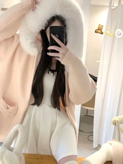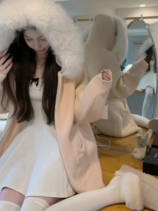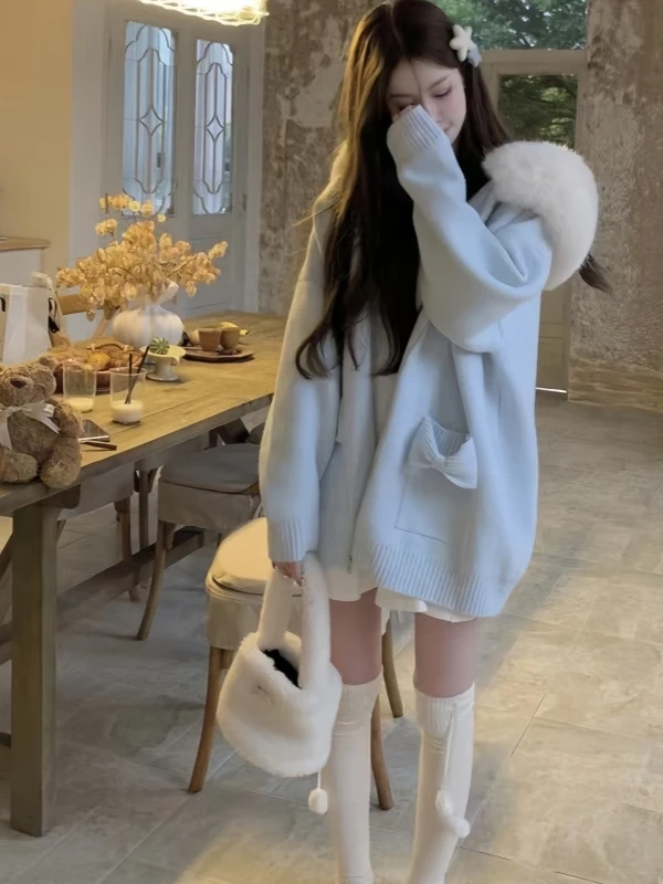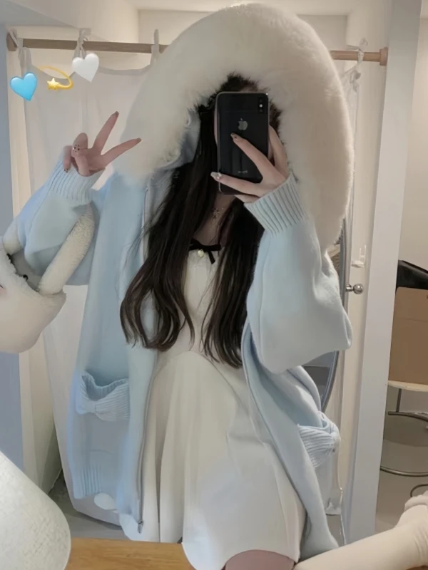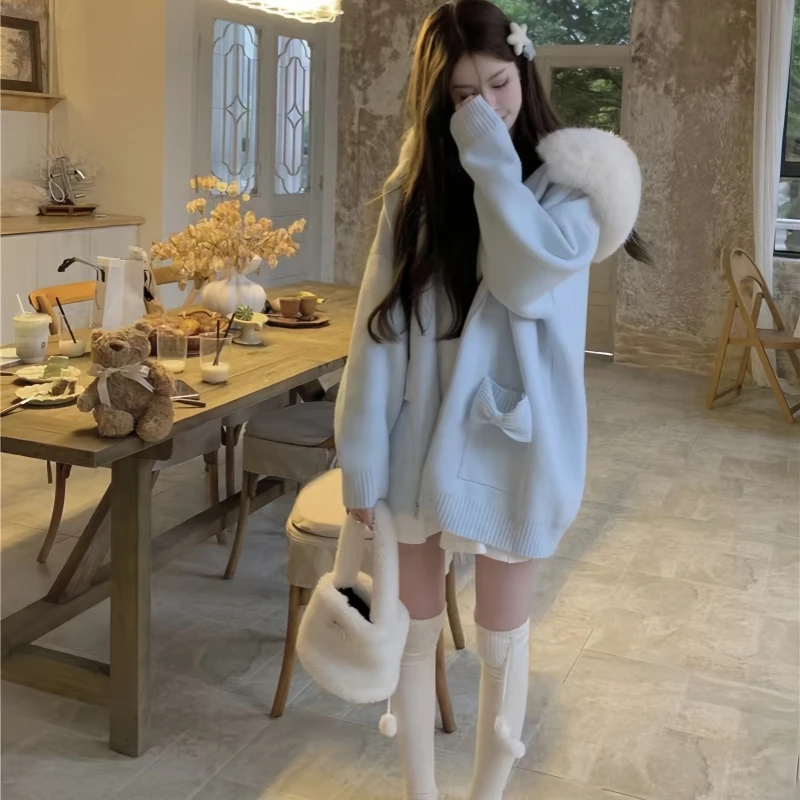 Featuring a relaxed fit and hooded design, this cardigan embodies a cozy, laid-back aesthetic perfect for autumn and winter.