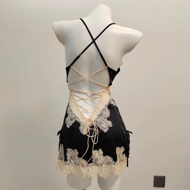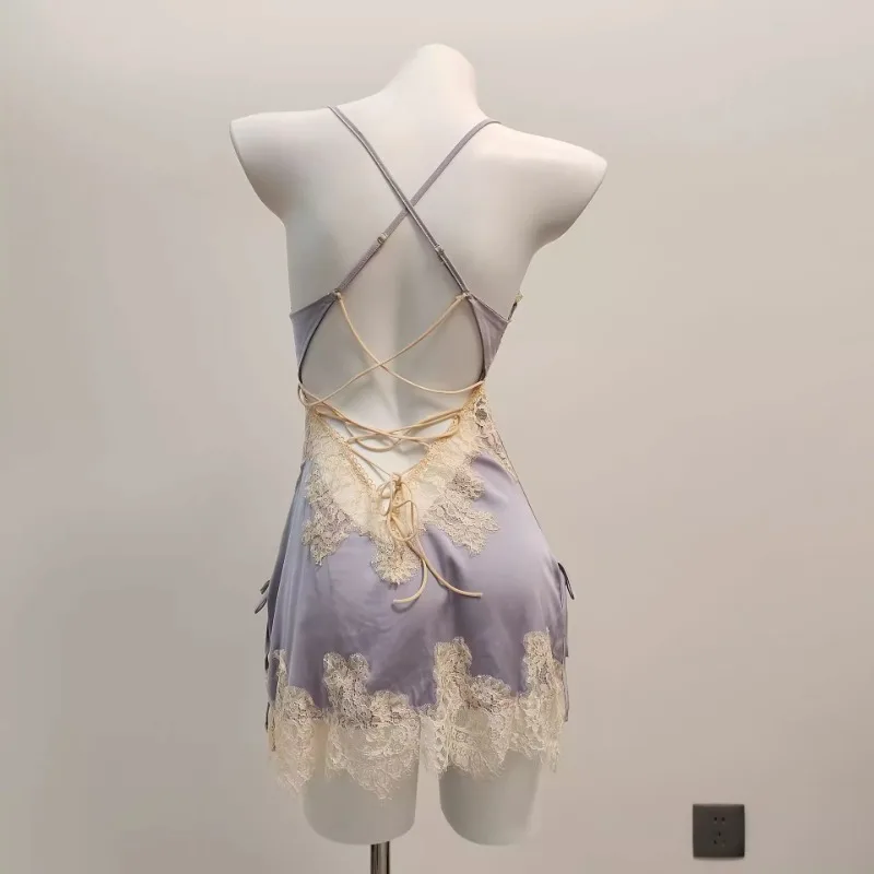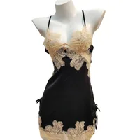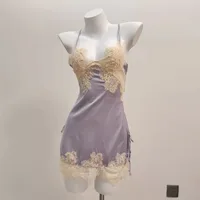 2025 New Thin Lace Suspender Underwear Sexy Sleepwear Temptation Pajamas Small Chest Water-soluble Flower Ice Silk Nightdress