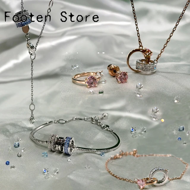 2025 New Trend Fine Jewelry Sets Charming Pink Blue Pendant Crystal Luxury Necklace Bracelet Earrings