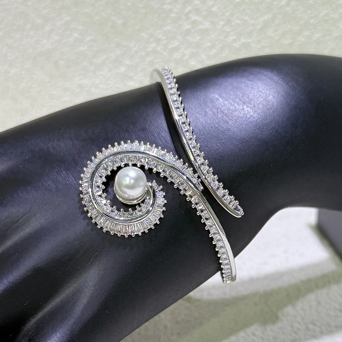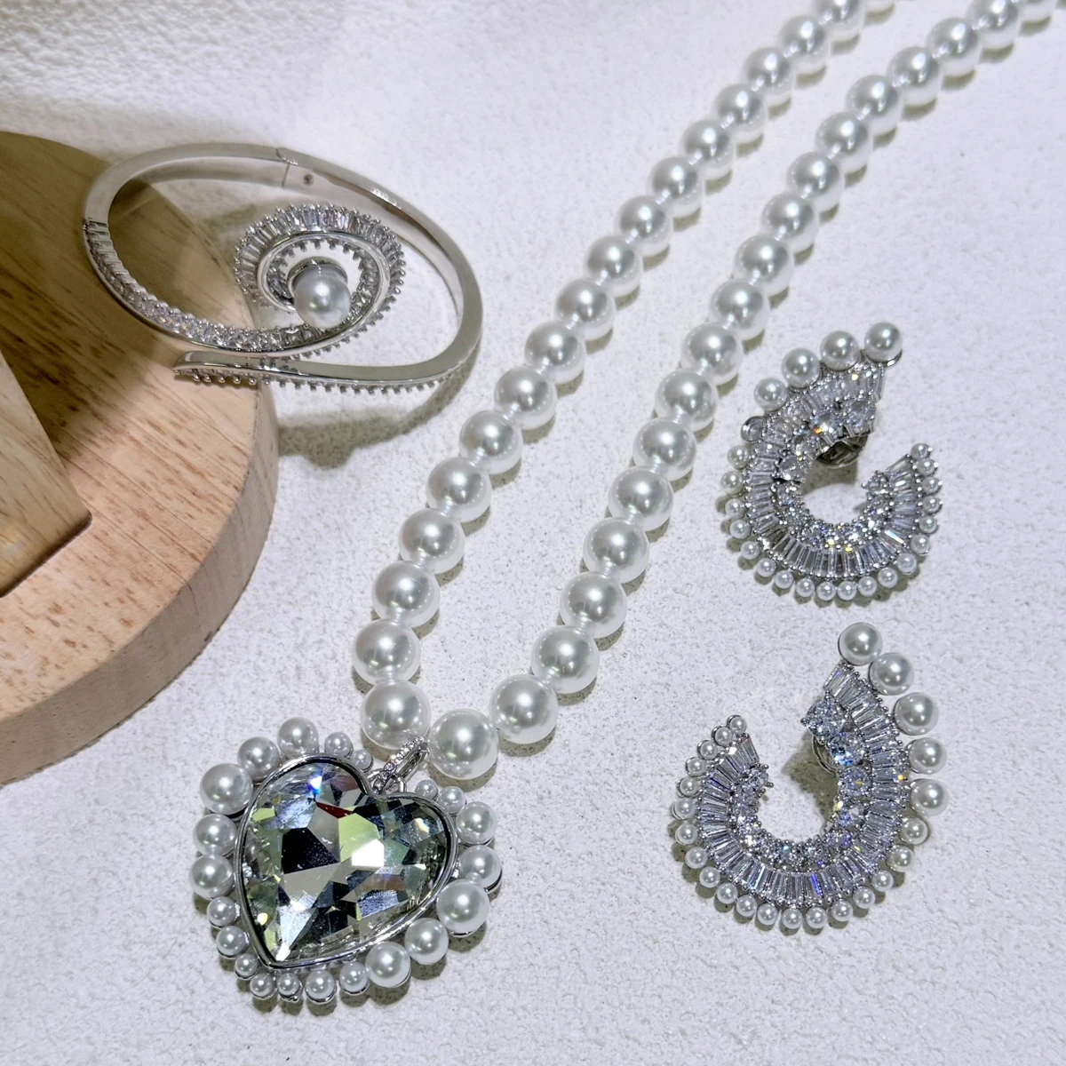 2025 New Trend Fine Wedding Jewelry Set Charm Silver Heart shaped Crystal Luxury Pearl Necklace Earrings
