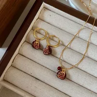 3Pcs 18k Gold-Plated Five-Leaf Flower Necklace Earrings Bracelet Jewelry Set For Woman Fashion Party Jewelry Daily Wear Clover