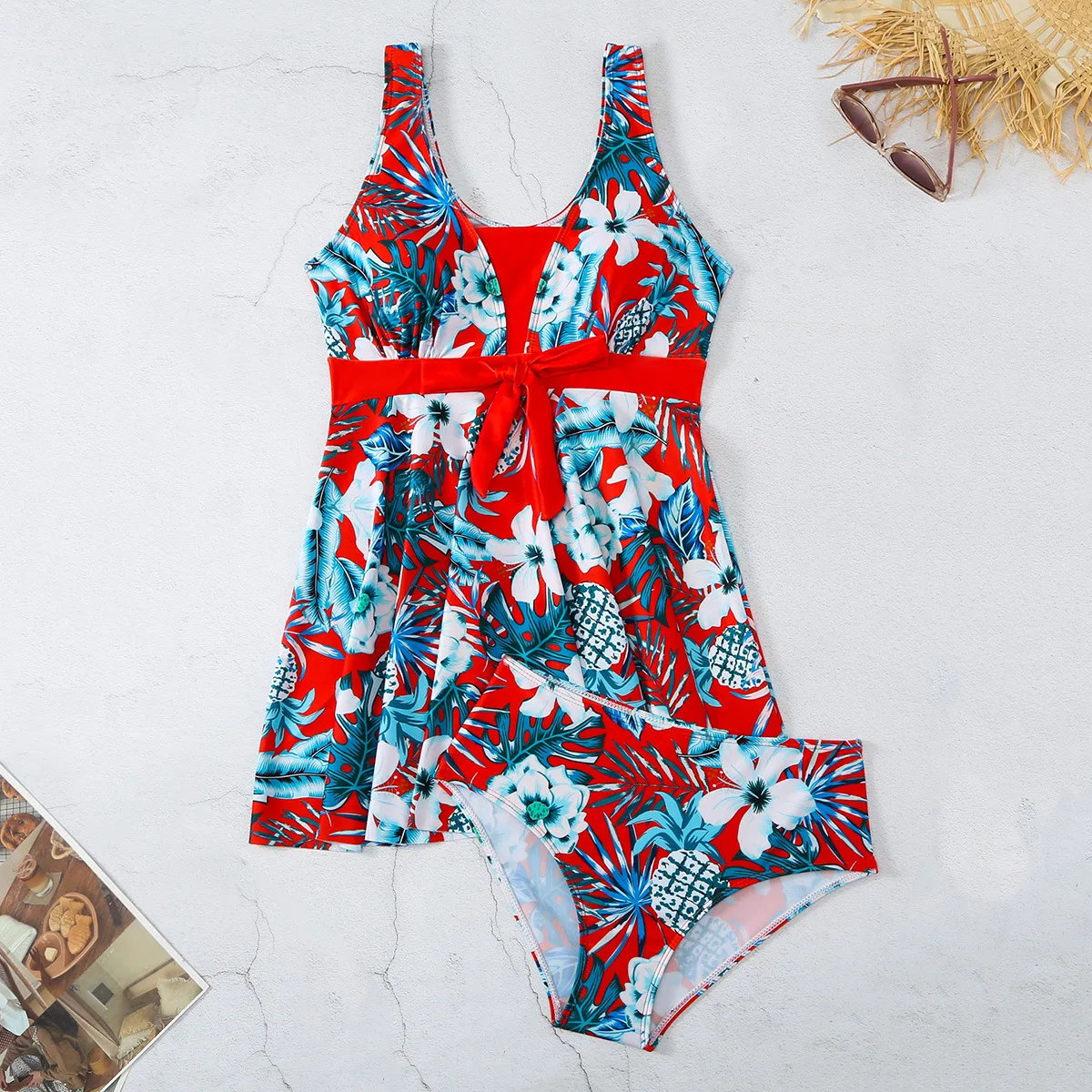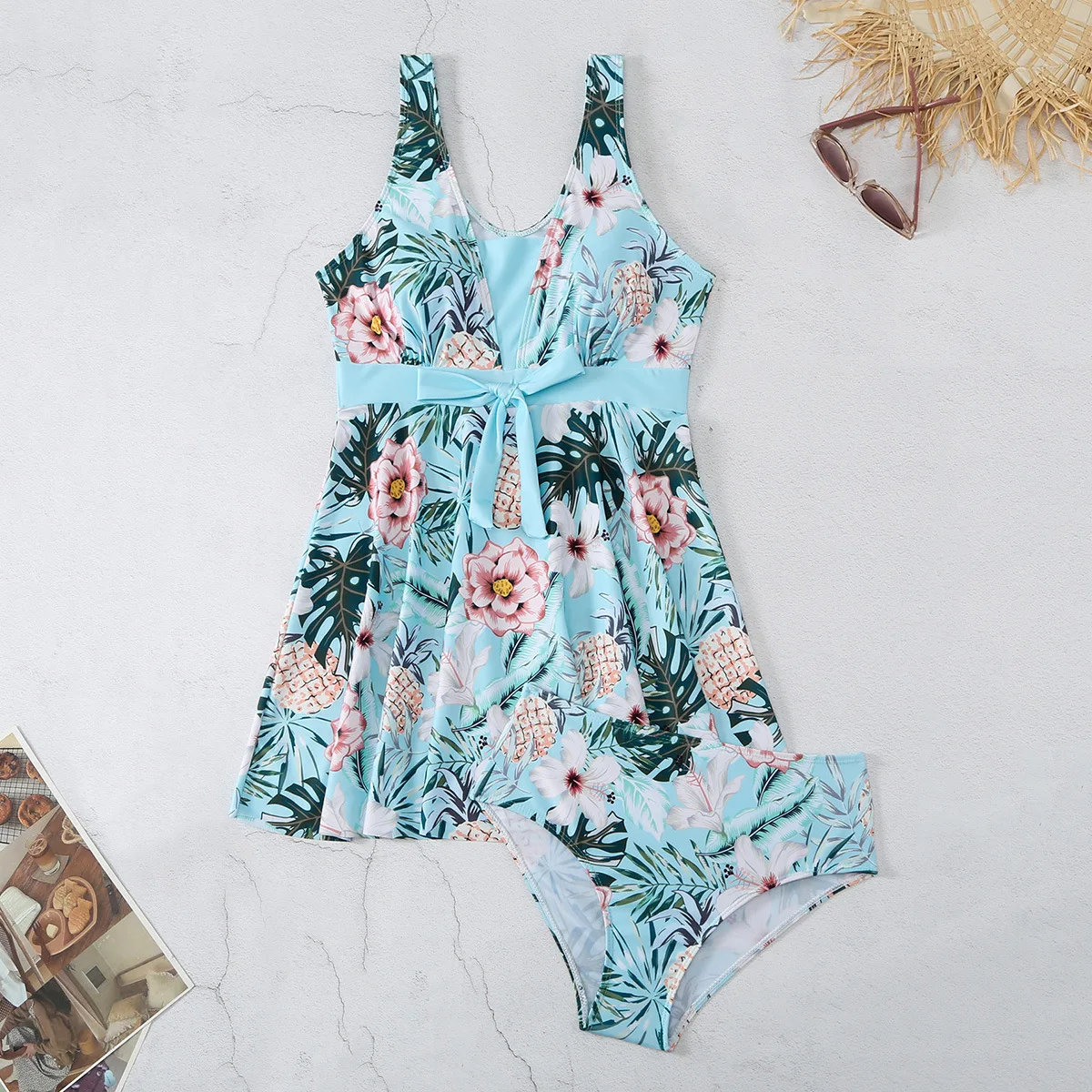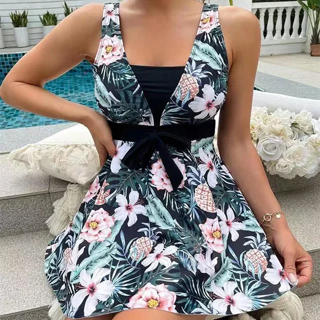 2025 New Tropical Print Knot Front Swimwear Women One Piece Swimsuit Women Dress Bathers Bathing Swimming