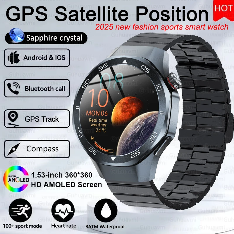 2025 New GT5 Pro Smart Watch Men AMOLED Screen GPS Motion trajectory Heart Rate Monitr Bluetooth Call SmartWatch Waterproof Band