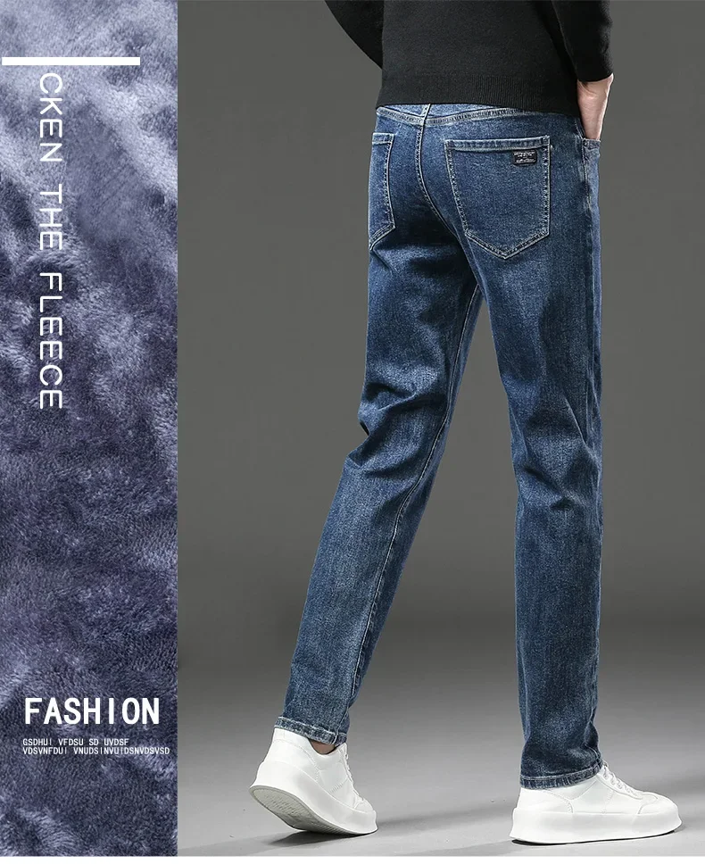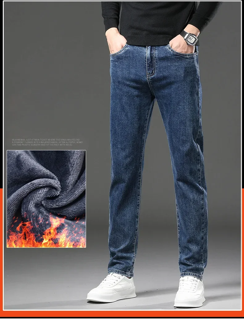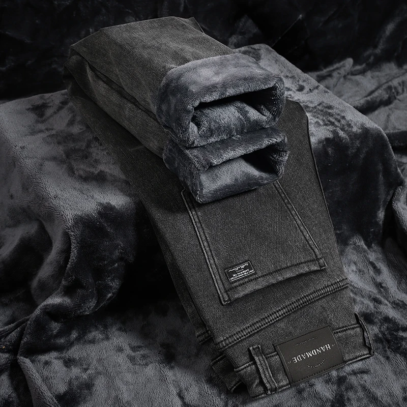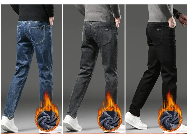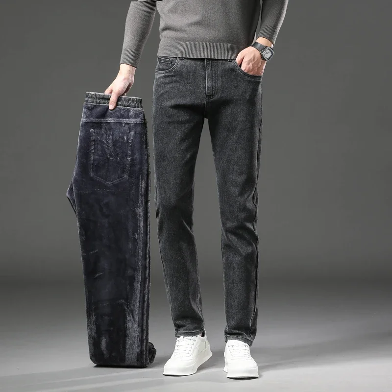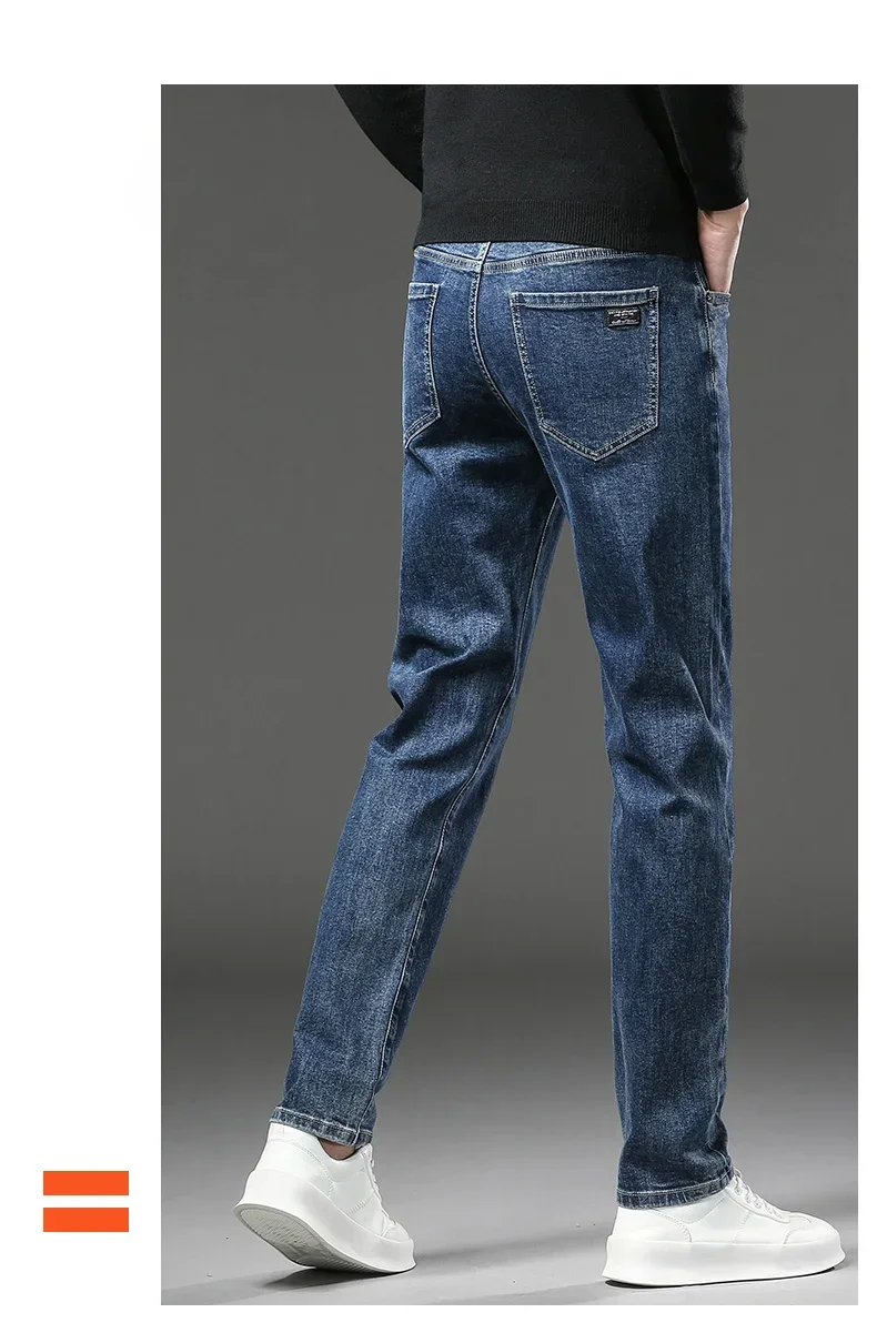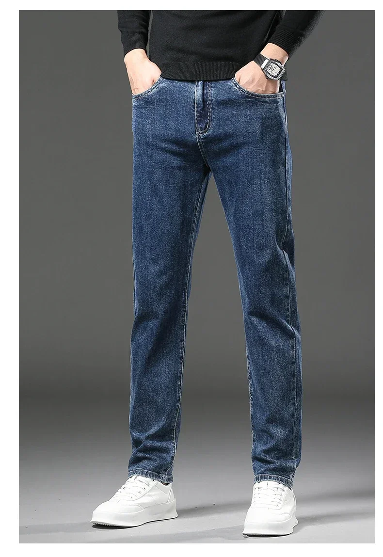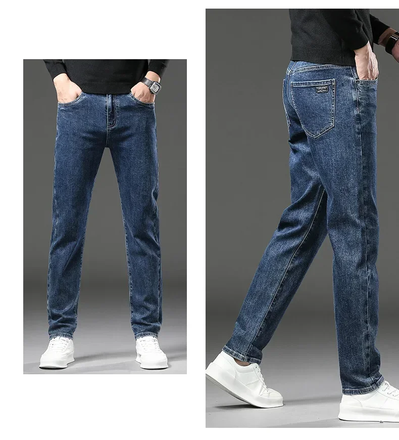 Men High End Elasticity Jeans Male Loose Straight Fashion Casual Denim Pants Vintage Business Versatile Slim Fit Black Trousers