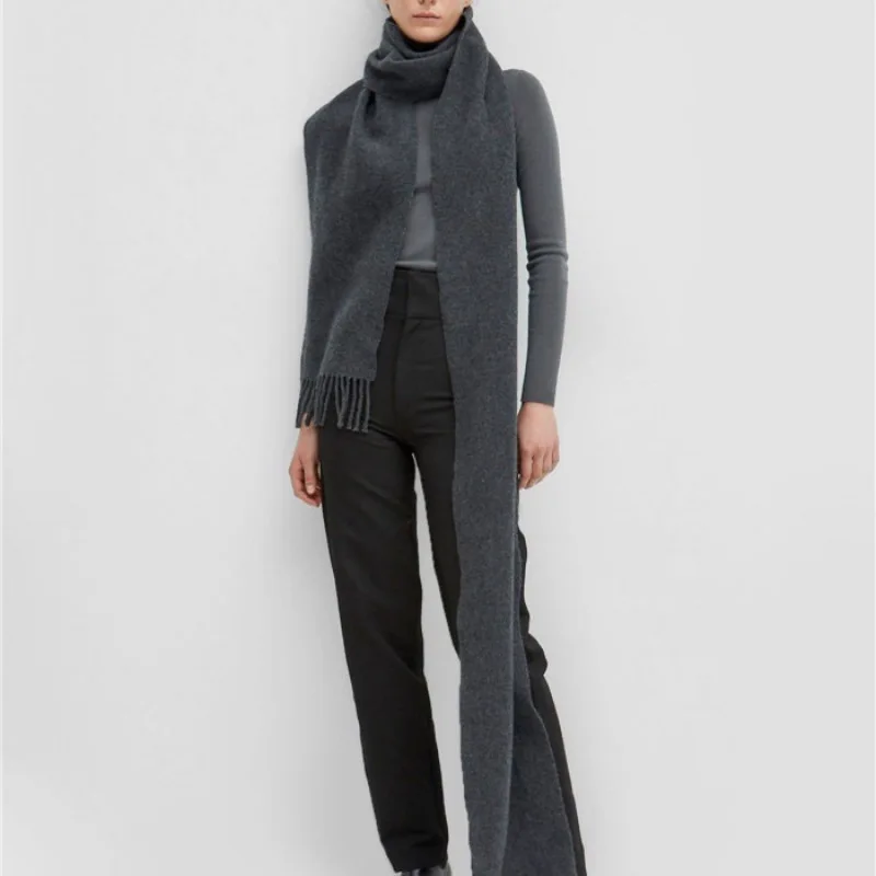 Long Knitted Scarf Women's Winter New Korean Version Color Block Woolen Yarn Imitation Cashmere Scarf for Students Young Men