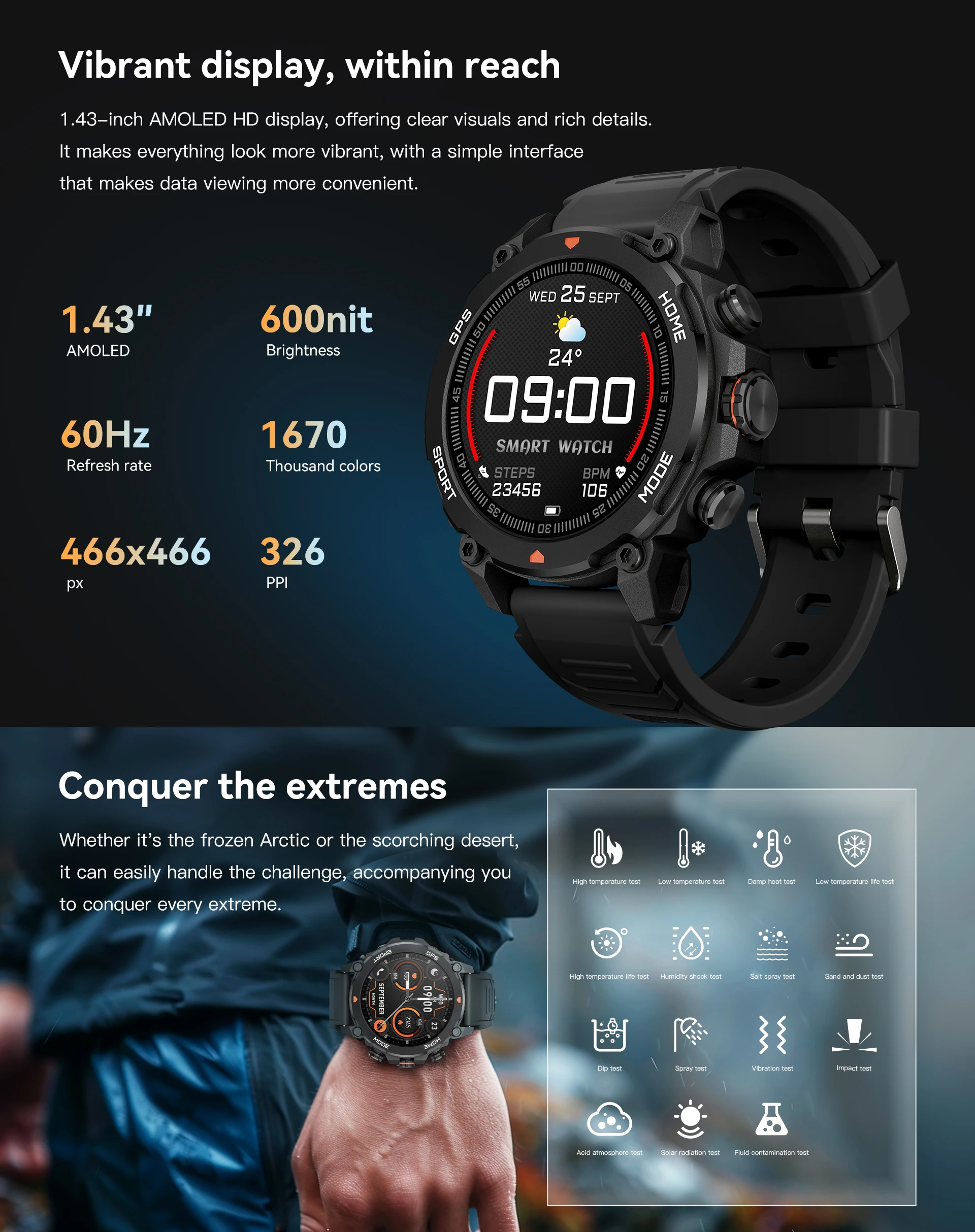 2025 Outdoor Military GPS SmartWatch Aurafit G6 / Trek 1 Compass Altimeter Chat GPT 5ATM Waterproof Sports