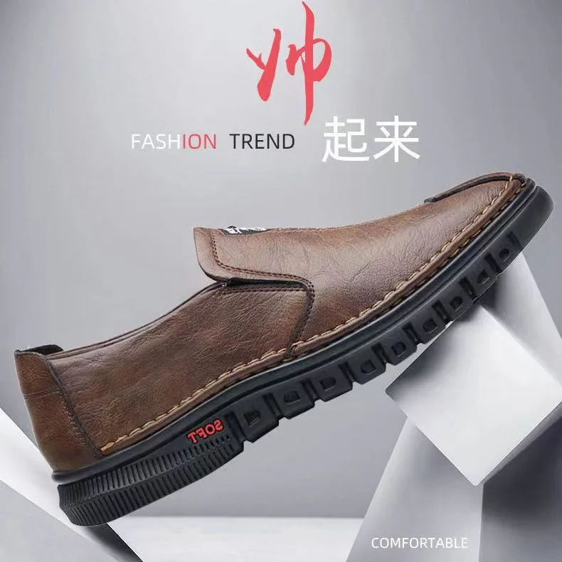 2025 Male Business Formal Wear Casual Shoe Men's Breathable Leather Shoes Black Soft Leather Soft Bottom Spring Best Man Homme
