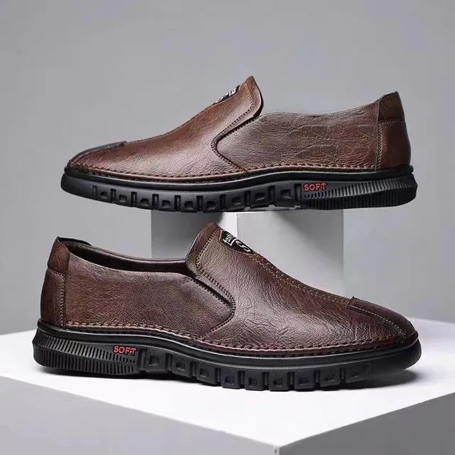 Stylish Men's Leather Loafers Men Thick Bottom Business Shoe Classic Leather Man Casual Shoes Senior Brand Male Walking Footwear