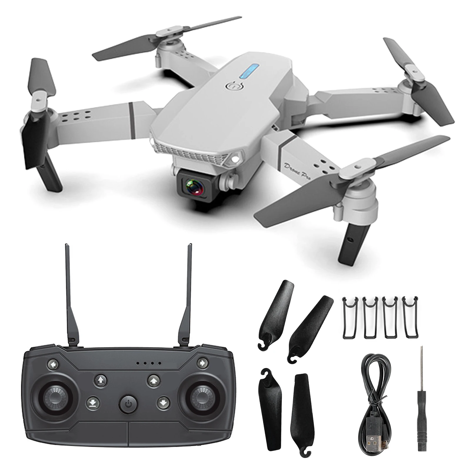 Functions: Up/Down, Forward/Back, Left/Right Turn, Sideways Flight, Headless Mode, Altitude Hold Mode, WiFi FPV (Dual Lenses with Dual Lens Switching Function), Manual Lens Adjustment Function