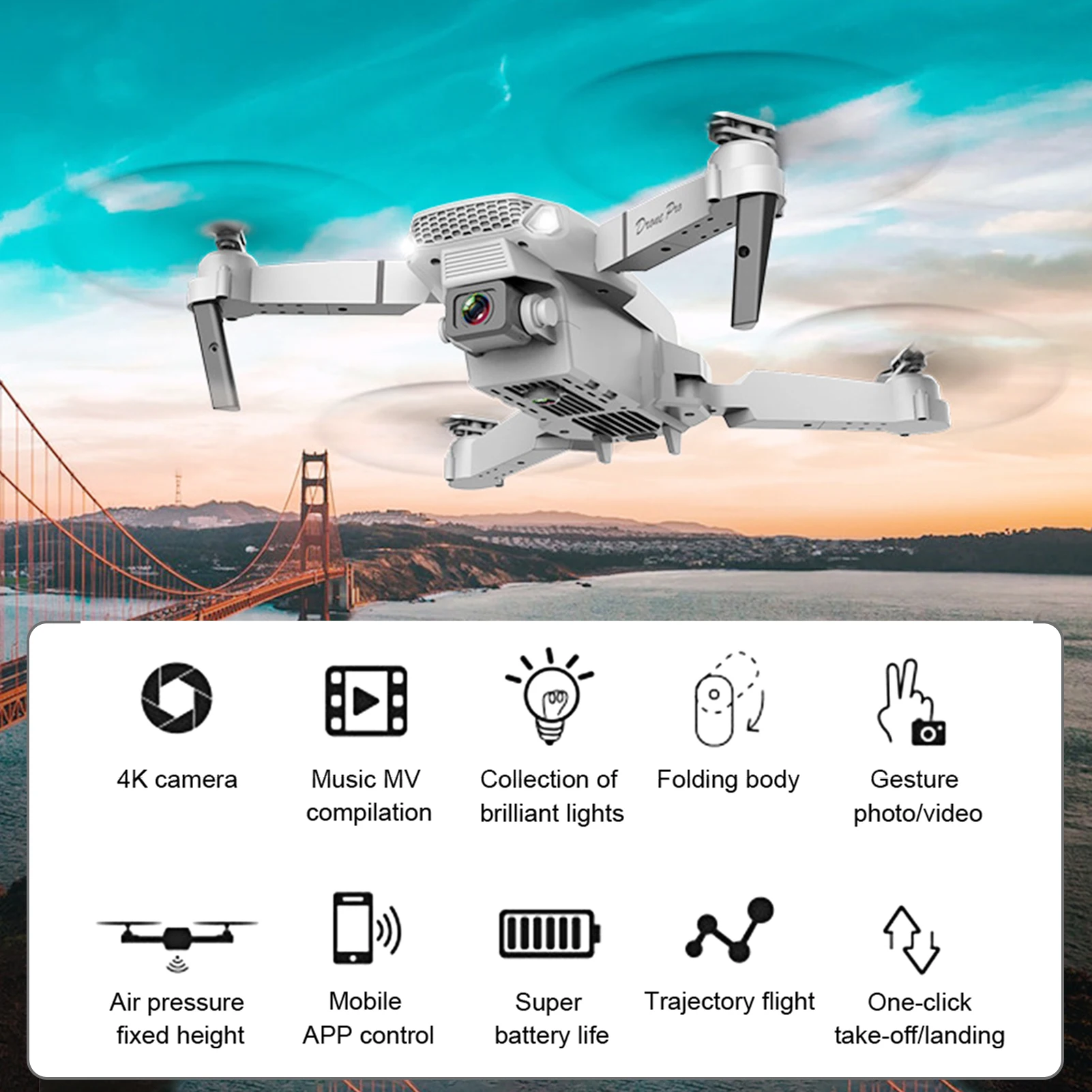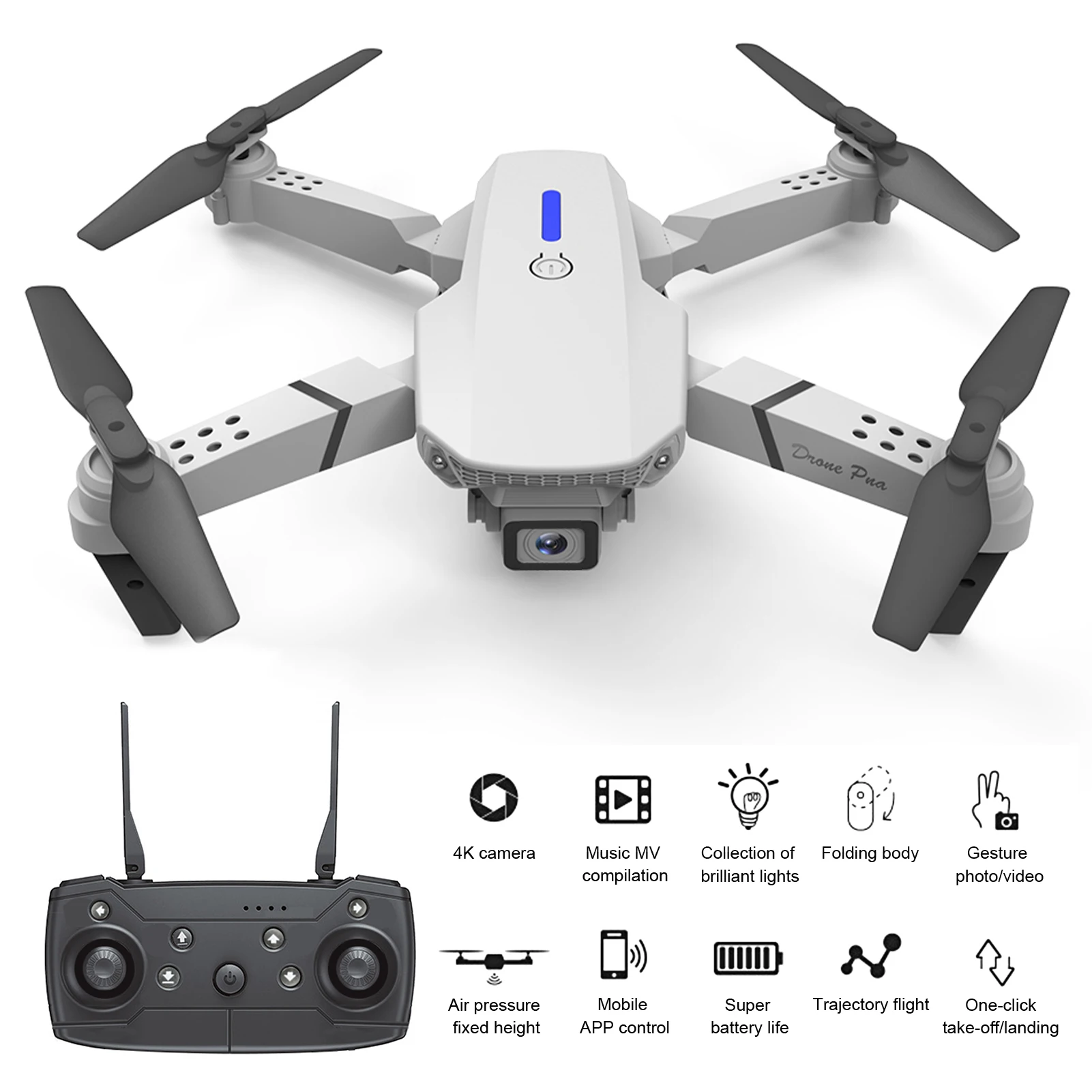 High-clarity Aerial Capture: Built-in 4K camera for stunning aerial photography and videography. WiFi connectivity enables seamless mobile app integration for real-time transmission and control.