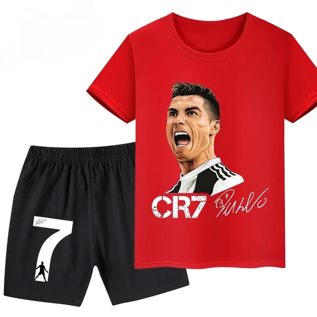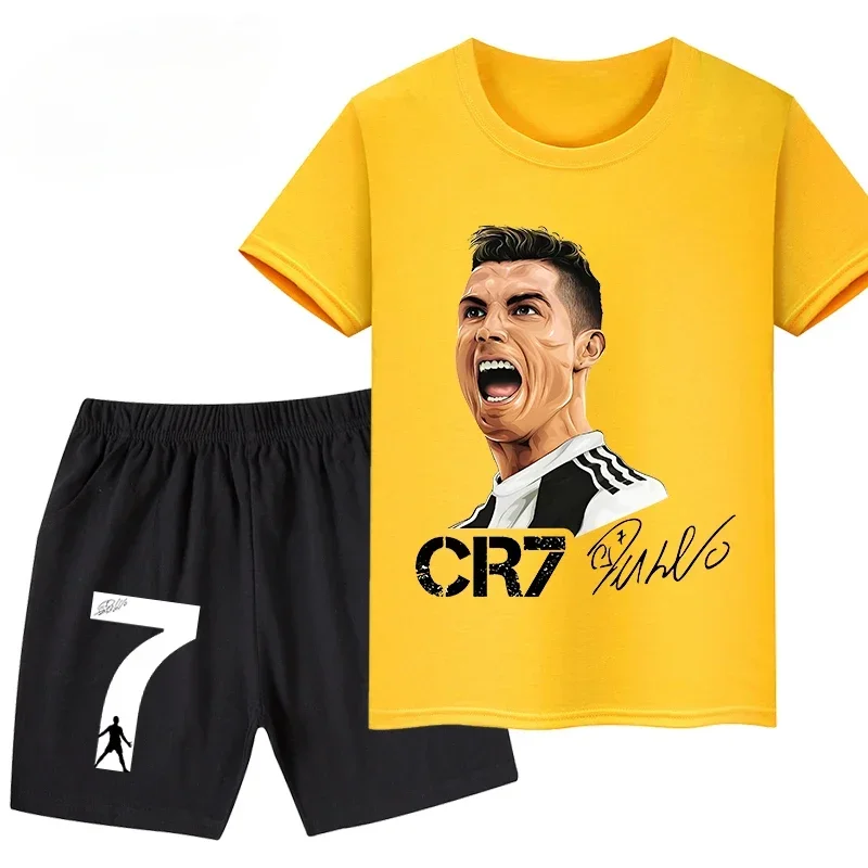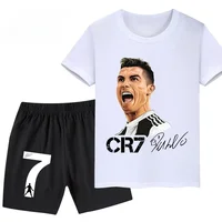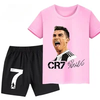 2025 Ronaldo Football Player CR7 Printed Children Clothing Casual T-shirt+Shorts 2pcs Sets Summer Kids