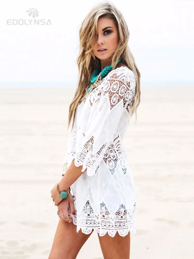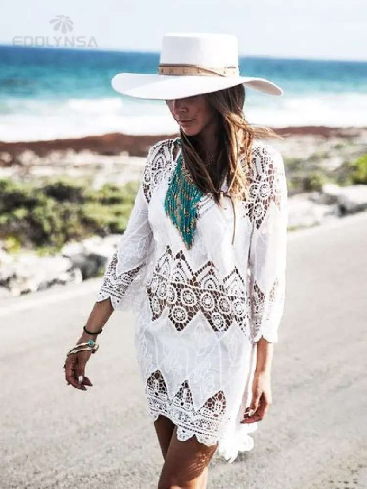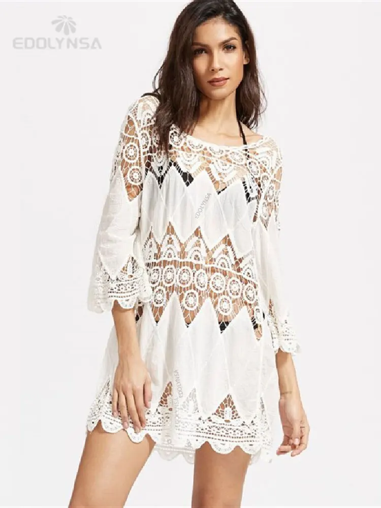 Summer Marble Print Dress Women Elegant V-Neck 3/4 Flare Sleeve Knee-Length Mini Dress Ladies A-Line Boho Beach Dresses Vestidos