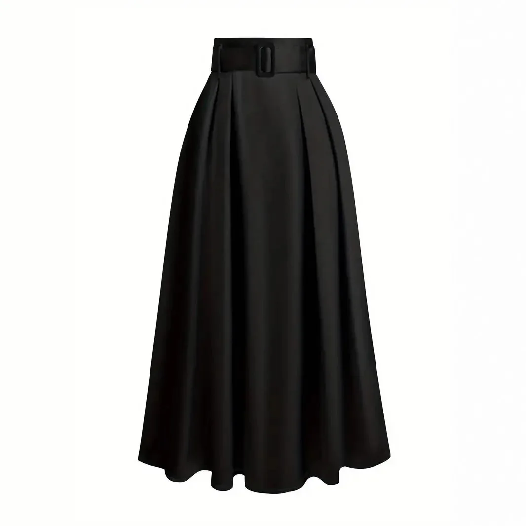 Dressy Casual Graphic Print Pleated Long Skirts Women Autumn Fashion Elastic High Waist Geometry Midi Skirt Streetwear 2023