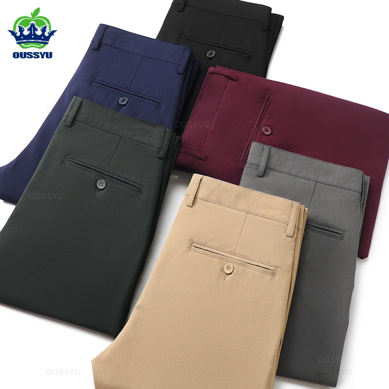 2025 Spring Autumn New Men’s Straight Casual Pants Business Fashion Khaki Grey Red Black Solid