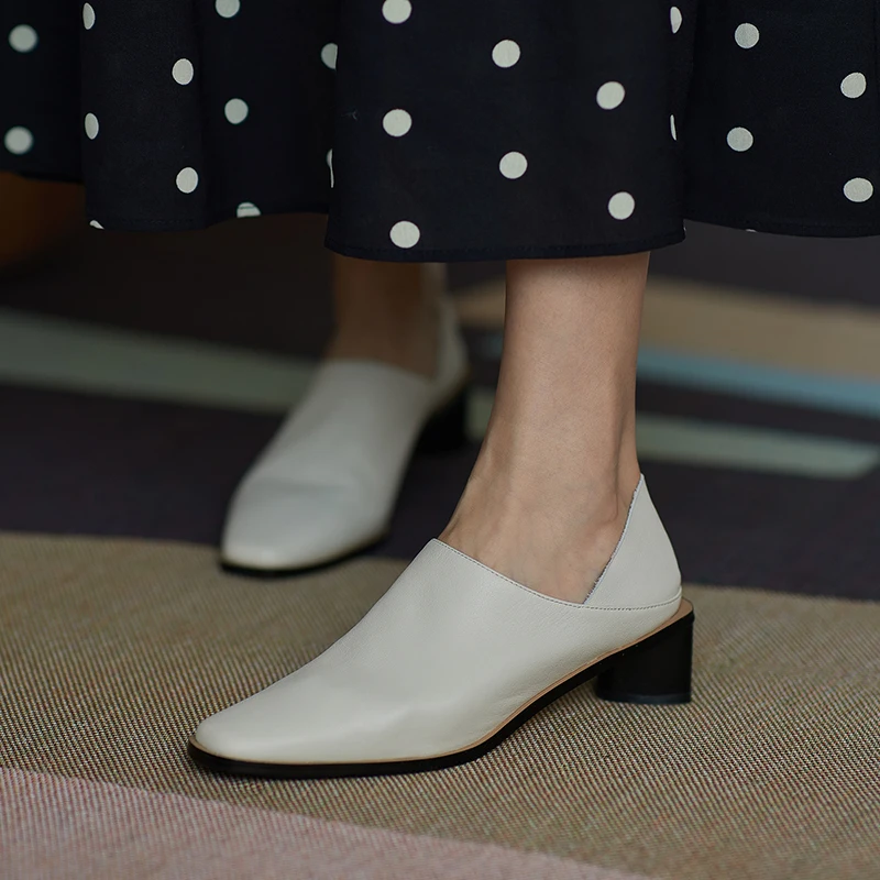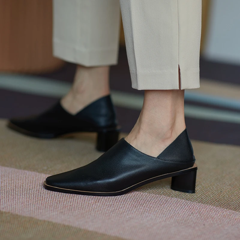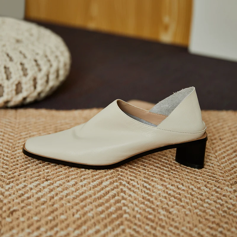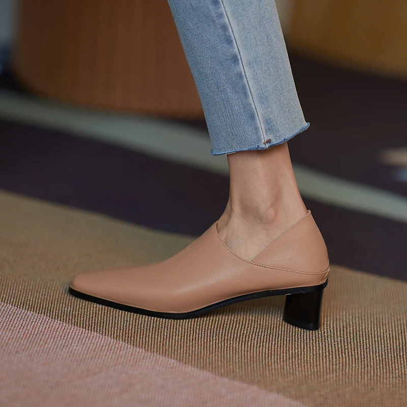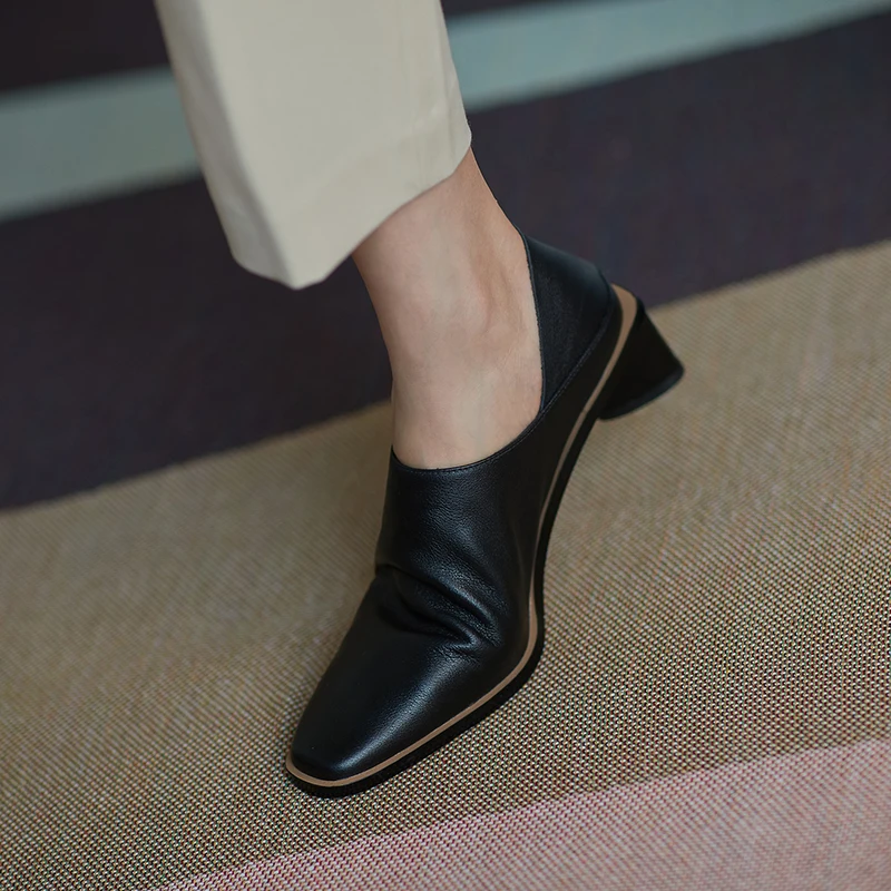 2025 Spring Summer Arrive Dress Office Shoes Women Pumps Genuine Leather Shoes Square Toe High Heels