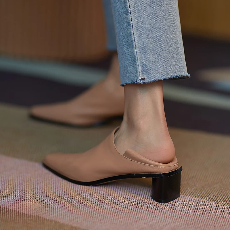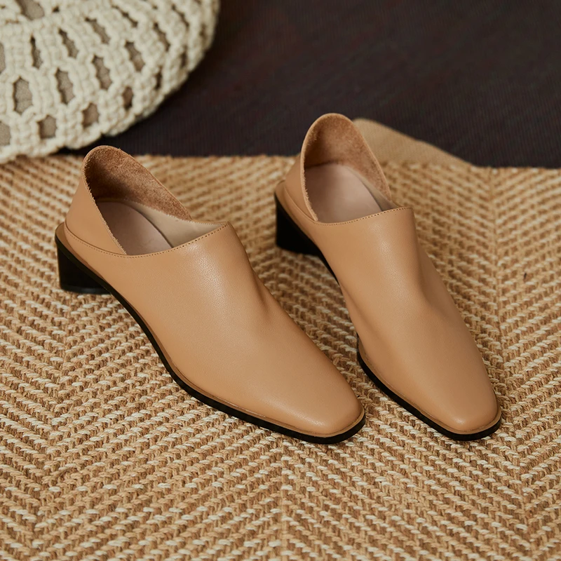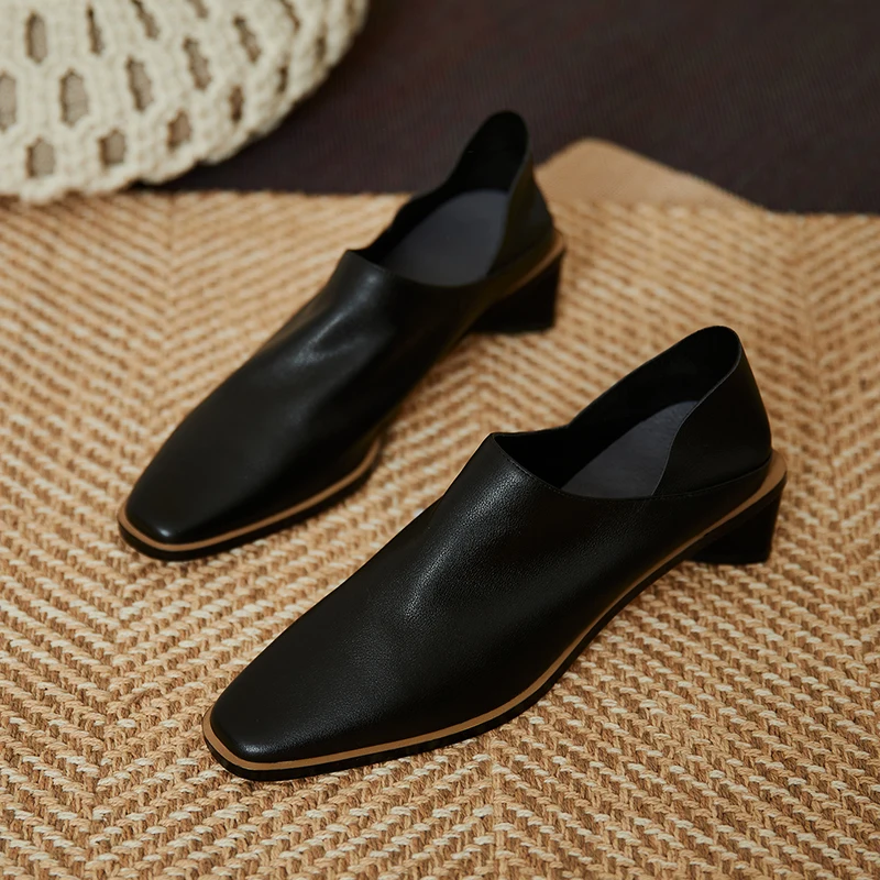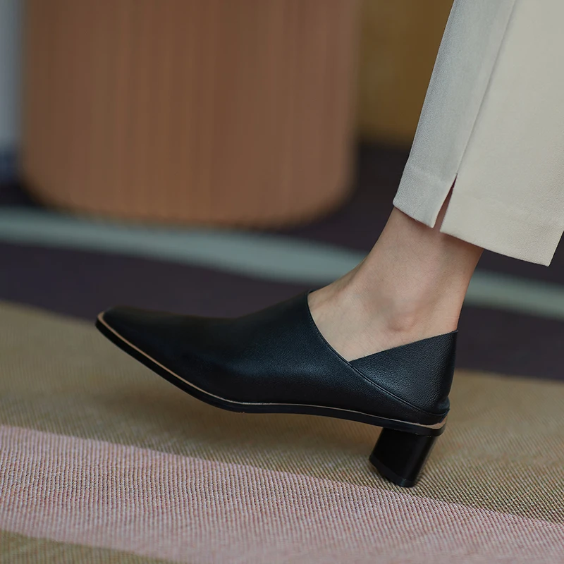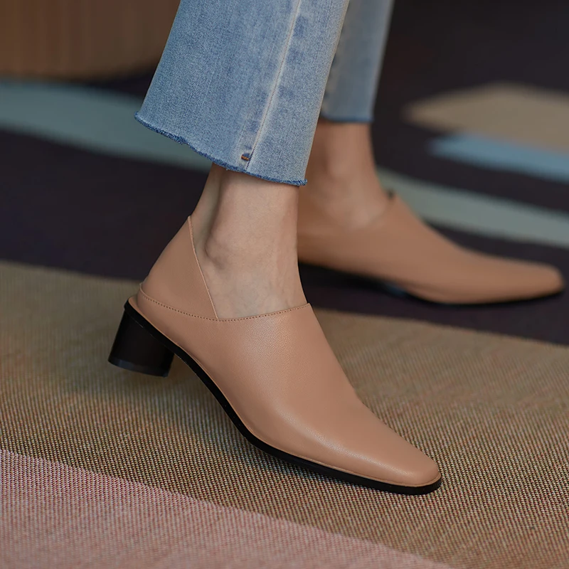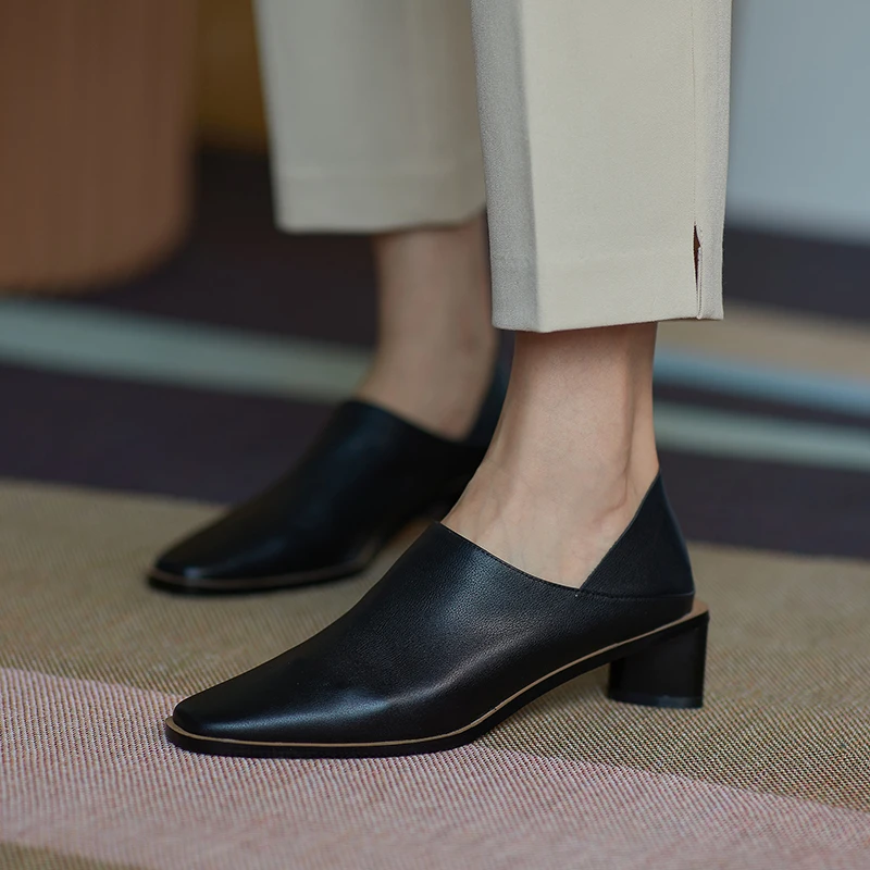 2025 Spring Summer Arrive Dress Office Shoes Women Pumps Genuine Leather Shoes Square Toe High Heels