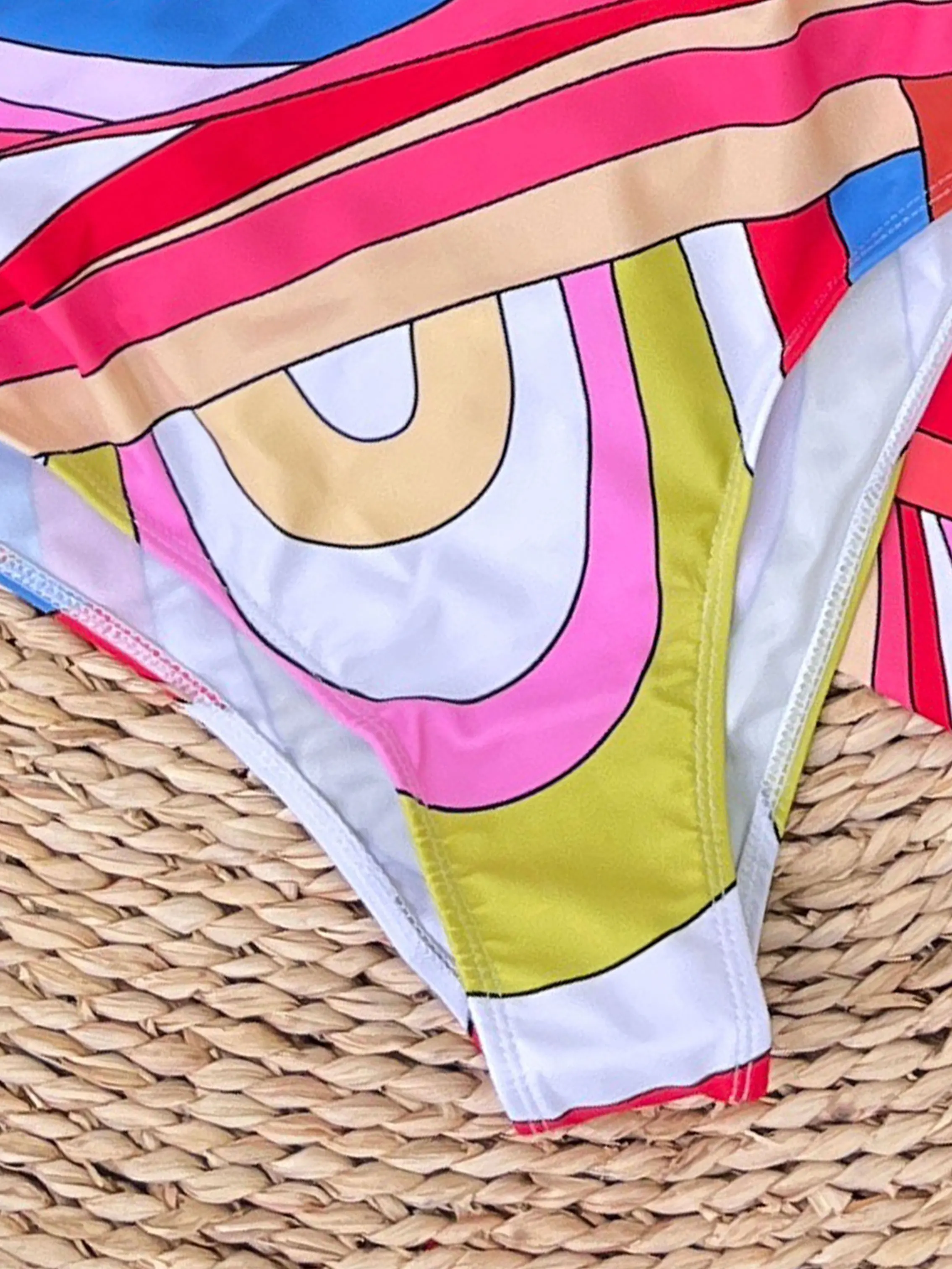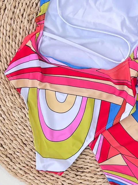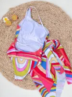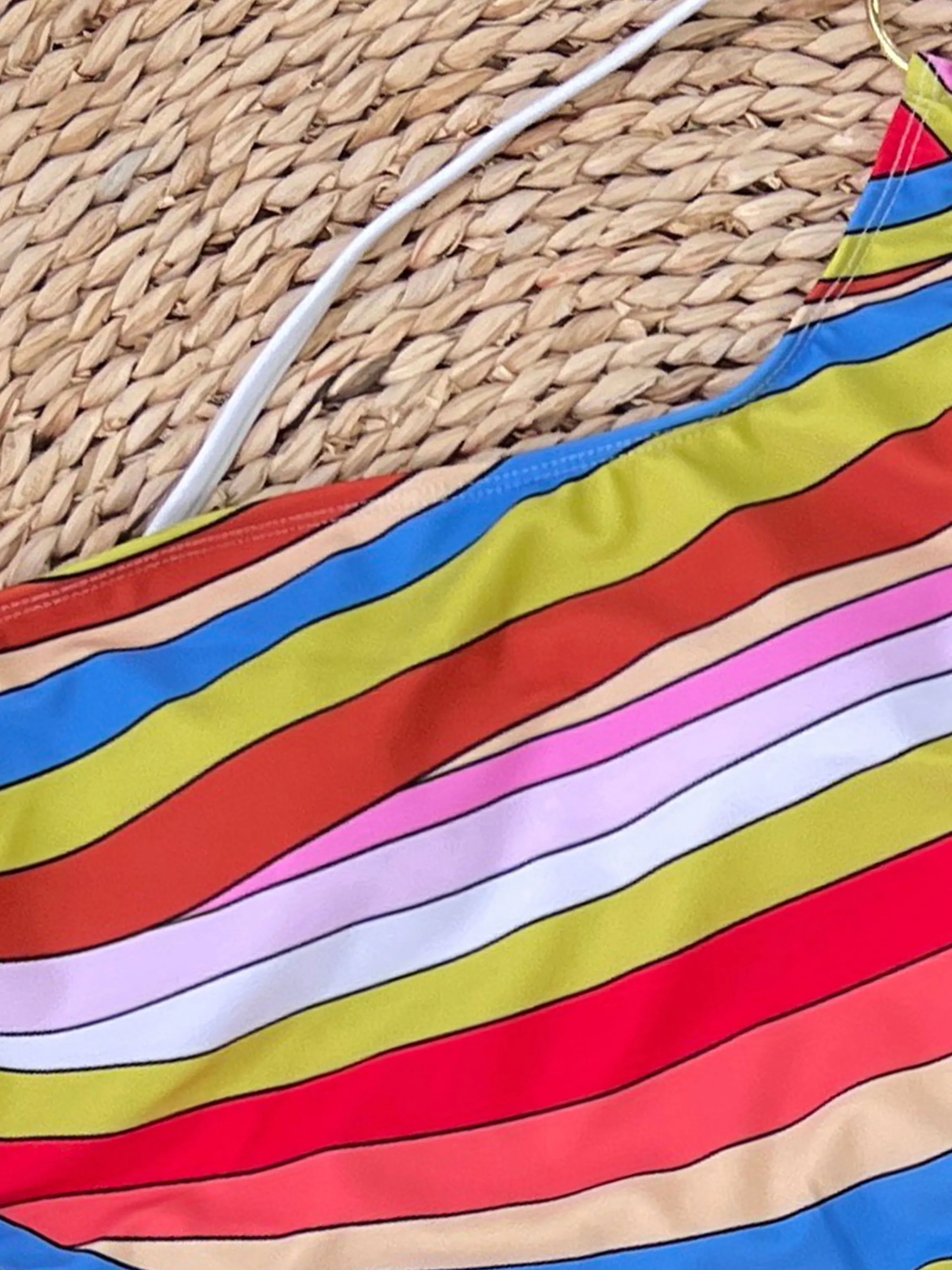 2025 Style Colorful Stripped Women One Piece Swimsuit And Skirt Set Perfect For Summer Vacation Female