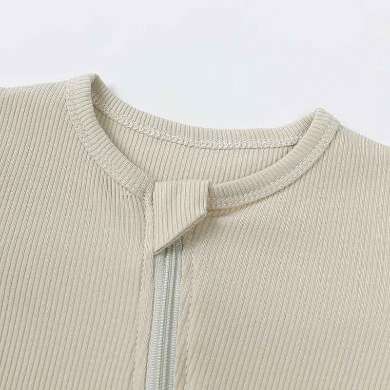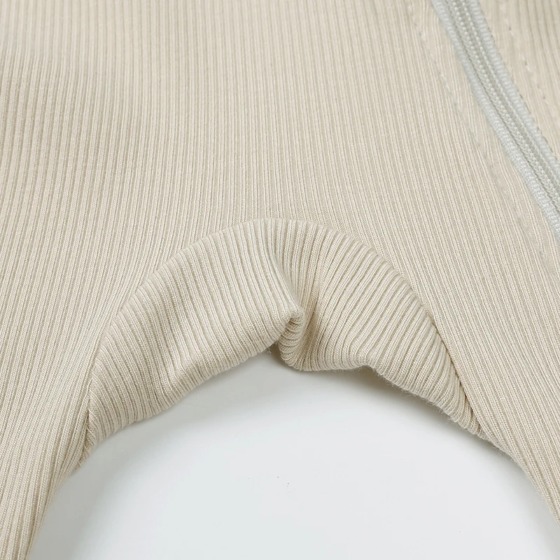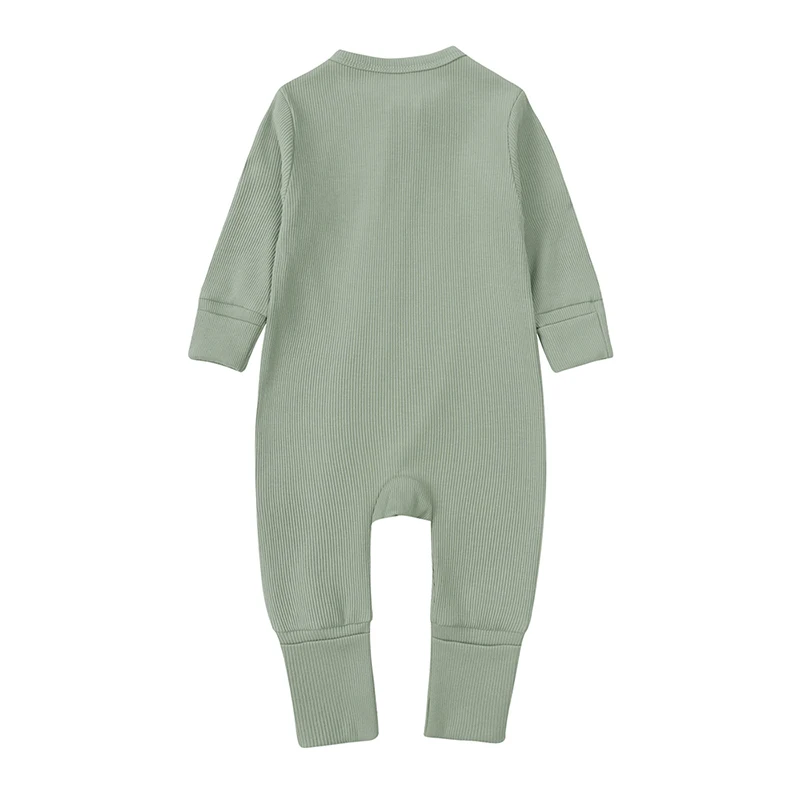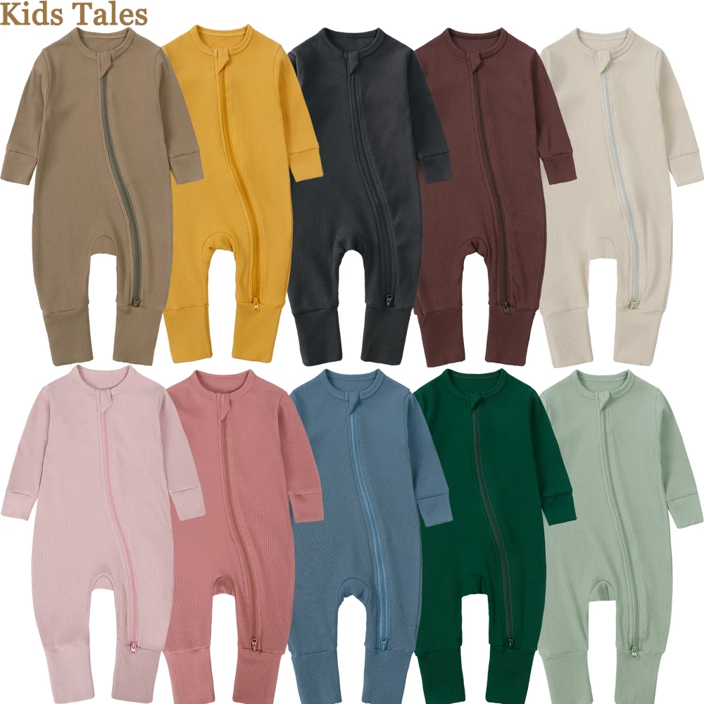 2025 Summer and Autumn Infant Boy Onesies Toddler Solid Color Zipper Newborn Romper Long Sleeve Ribbed Baby Clothes Kid Pajamas